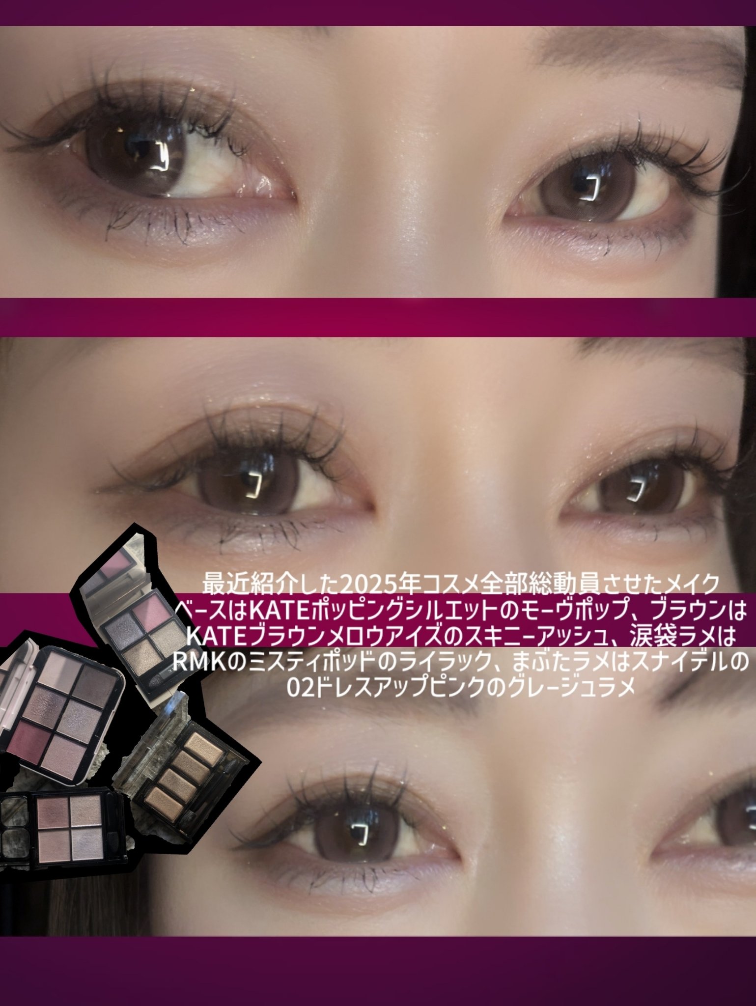 #今日のメイク今日はRMKでメイク。✔①から③の手順でメイクしました。①上下まぶた全体にブラシで乗せます。②上まぶたキワに目頭とメジリハやや太めにブラシで乗せます。③眉下にブラシで乗せます。✔リップはTHREEとYVESSAINTLAUREN...