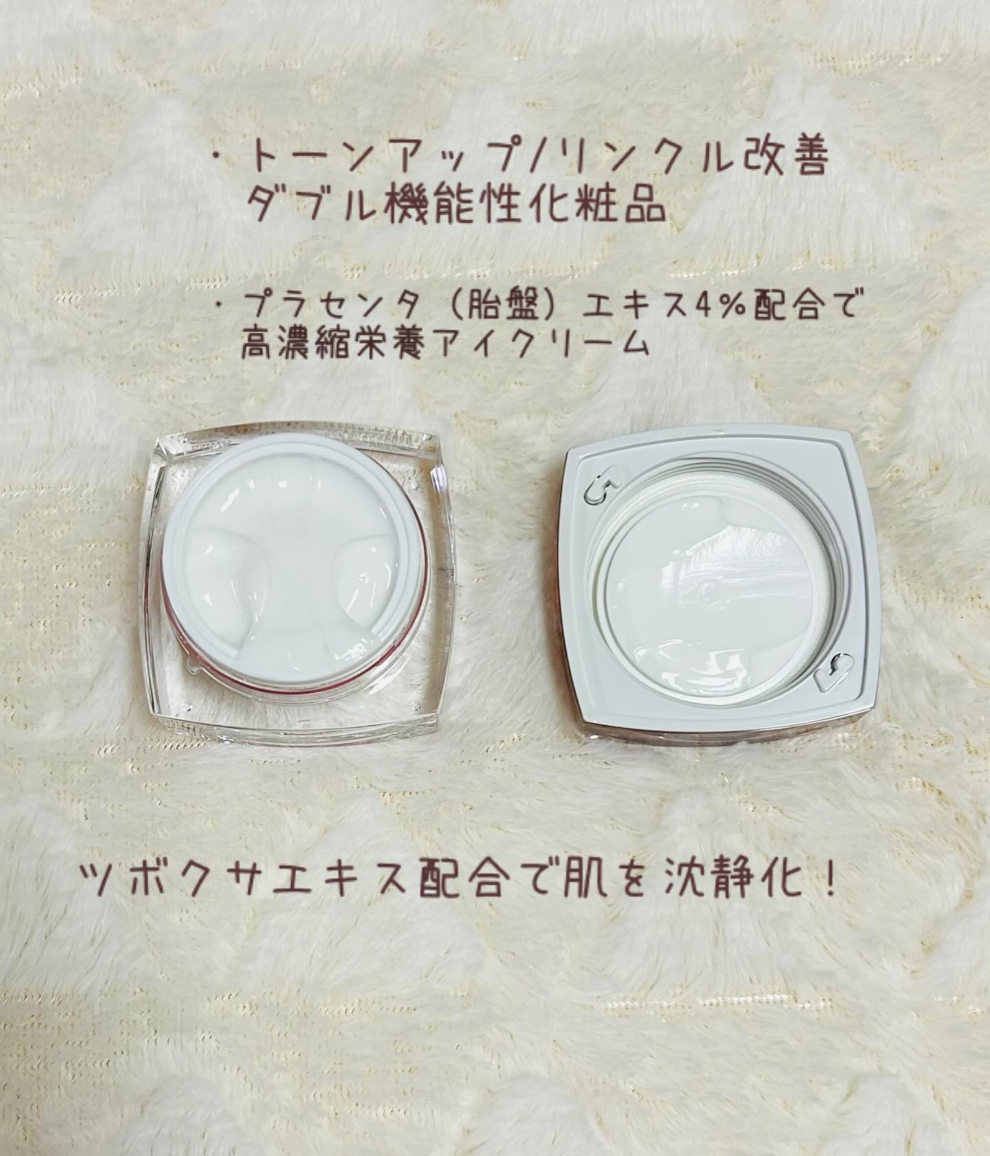 高濃縮コラーゲン&プラセンタ(胎盤)アイクリーム ✔︎目元のシワが気になる、予防したい ✔︎目の下が暗くくすんで明るく見せたい方などにおすすめ◡̈⋆ プラセンタ(胎盤)エキス4%配合で高濃縮 フランス産マリンコラーゲンエキス2%配合でハリのある肌へ トーンアップ効果で目の下のくすみを明るくし、ツボクサエキスで肌を落ち着かせてくれます𖤐 クリームはこっくりとしたテクスチャーですが 伸びが良く、しっとりとした目元に.ᐟ.ᐟ 保湿力があってもベタつき感がないので使いやすい◎