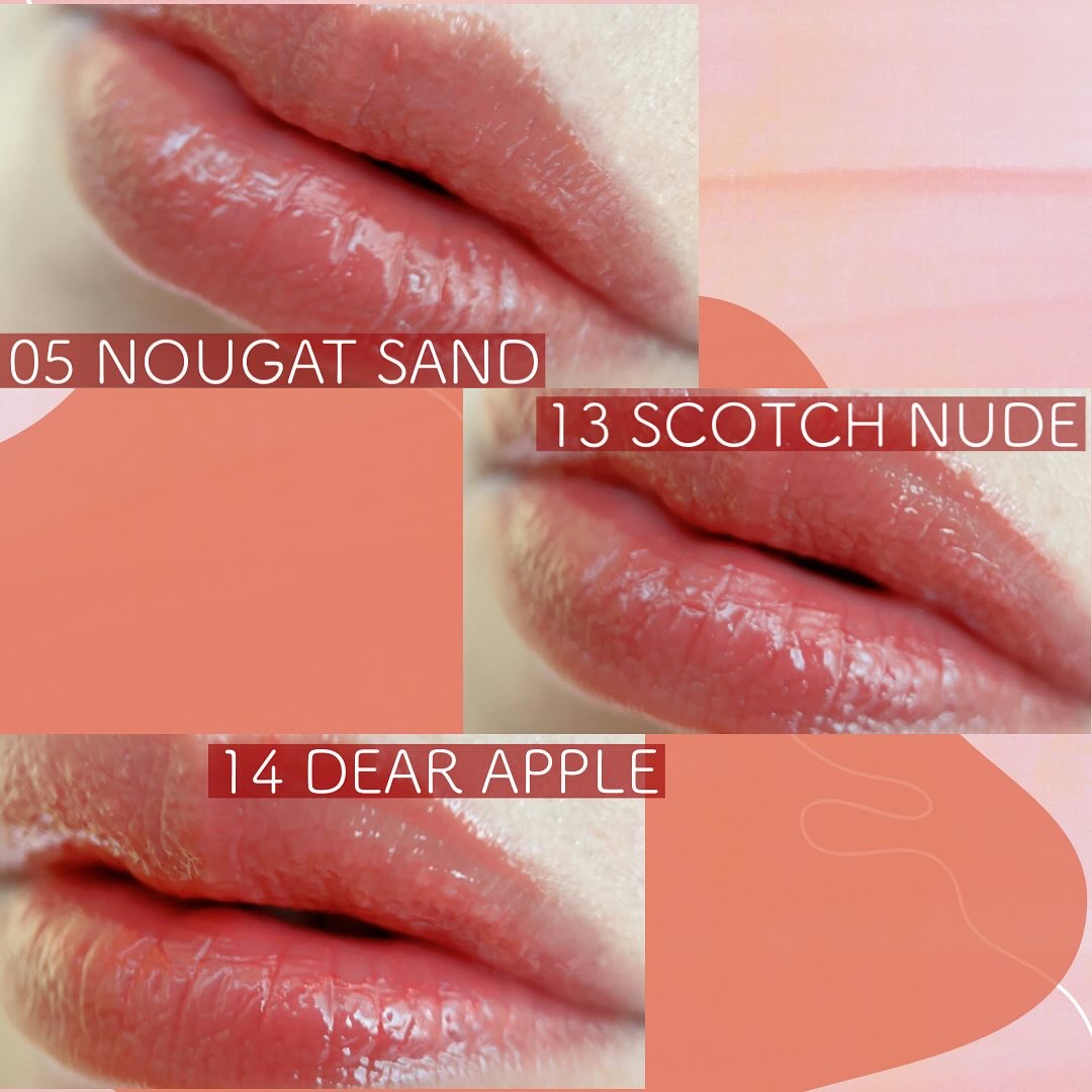 淡めのベージュリップあまりガッツリ色付けたくない人には良い色🙆♀️ やや赤み感じるベージュリップこれ使いやすくて好き💕 私としては珍しいおピンク時間とともに肌なじみ良い感じになるからピンクメイクの時はこれ使う🥳 軽やかなオレンジブラウン系🍊久々につけたらかわいー♡夏にはもってこいのカラーでは🔥