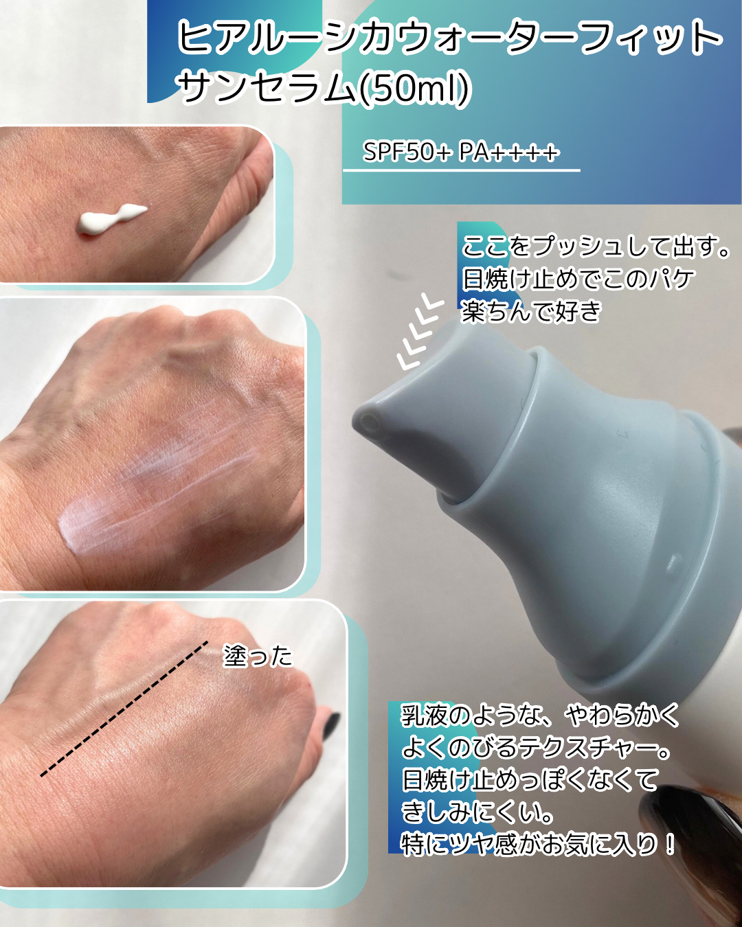 #PRSKIN1004ヒアルーシカウォーターフィットサンセラム☑︎SPF50+PA++++☑︎ポンプ式で出す量を調節しやすく衛生的セラムのように軽いつけ心地でべたつきにくい印象♡乳液のようななめらかなテクスチャーで伸びがよく、使いやすくてお気...