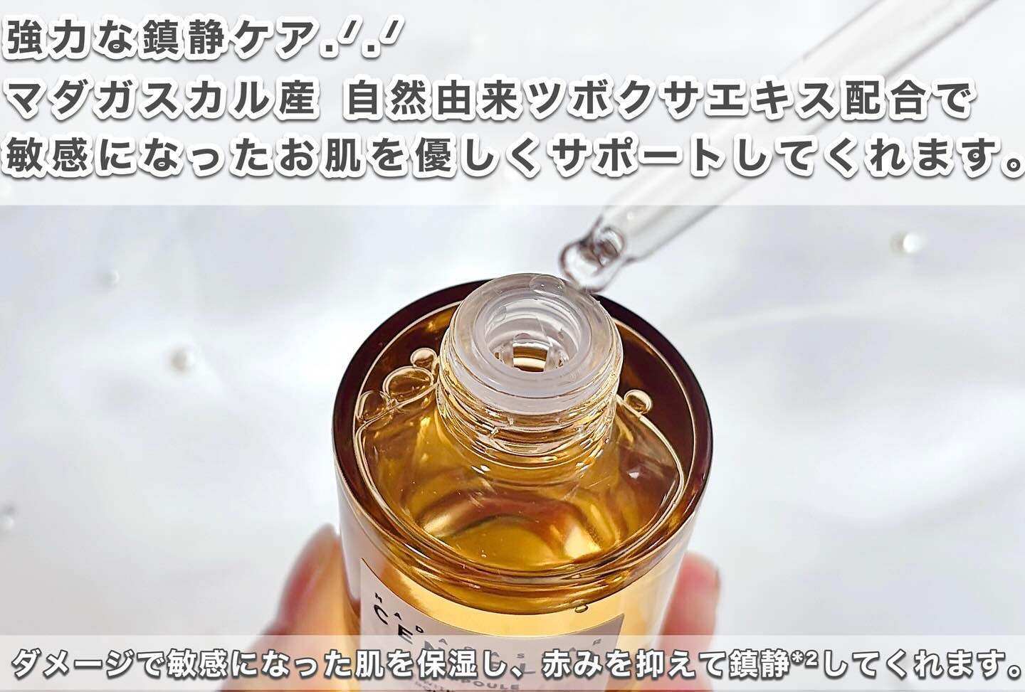- 太古の自然マダガスカルの自然由来ツボクサエキス*1を100%配合し、乾燥により刺激を受けた肌を整える美容液です。敏感に傾いた肌を素早く整える*2と同時に、乾燥による外部の刺激によって荒れやすい肌をしっとり艶やかに導きます。ベタつかないサラっとしたテクスチャーで、潤いをたっぷりと。 *1ツボクサエキス(保湿成分) *2パッチテスト済み(すべての方に刺激が起きないわけではありません)