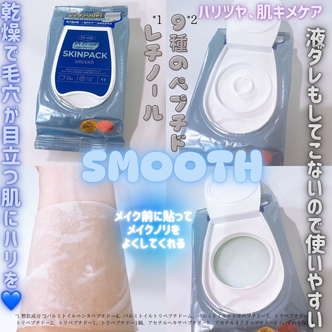 お肌に水分とひんやり感を与えながらキメを整え、メイクノリが良くなるベースへ💆♀️✨ スクエア型のシートがぴったりフィットで絶妙なサイズ感! 朝バタバタしている時にも便利◎ お肌の調子やなりたい肌に合わせてもパックを選べて楽しい🙆♀️ いつもよりメイクノリがいい感じで毎日使いたい🥳