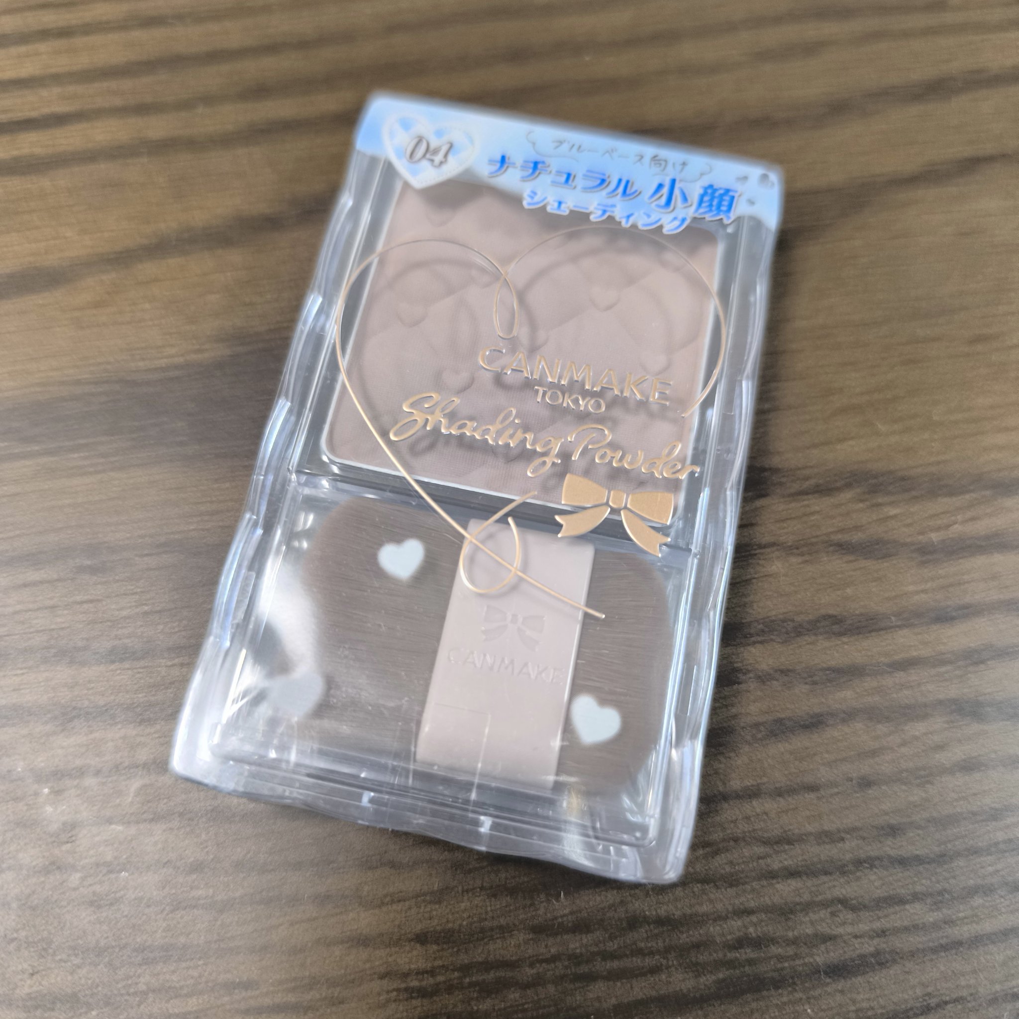 フェイスラインにキレイな立体感を出して、小顔に仕上げる、シェーディングパウダー 青みのあるグレー系のブラウンで、肌色にも合うし、ブルベカラー好きなので他のコスメとの相性も良い◎ 付属の平ブラシが、フェイスラインに塗りやすくて、自然な影が入り小顔に見える☺︎