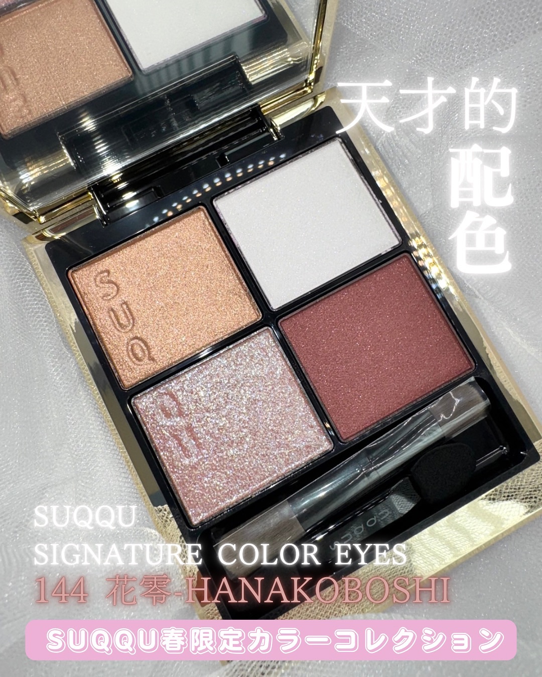 .#コスメ購入品★SUQQU シグニチャーカラーアイズ 144花零-HANAKOBOSHI抽選当たっててギリギリまで悩んだけど引き取ってきた😉見た目より難しくなく使いやすくて、、かわいい、、右上偏光ピンクも素敵だけど左下のラメがめちゃかわいい...