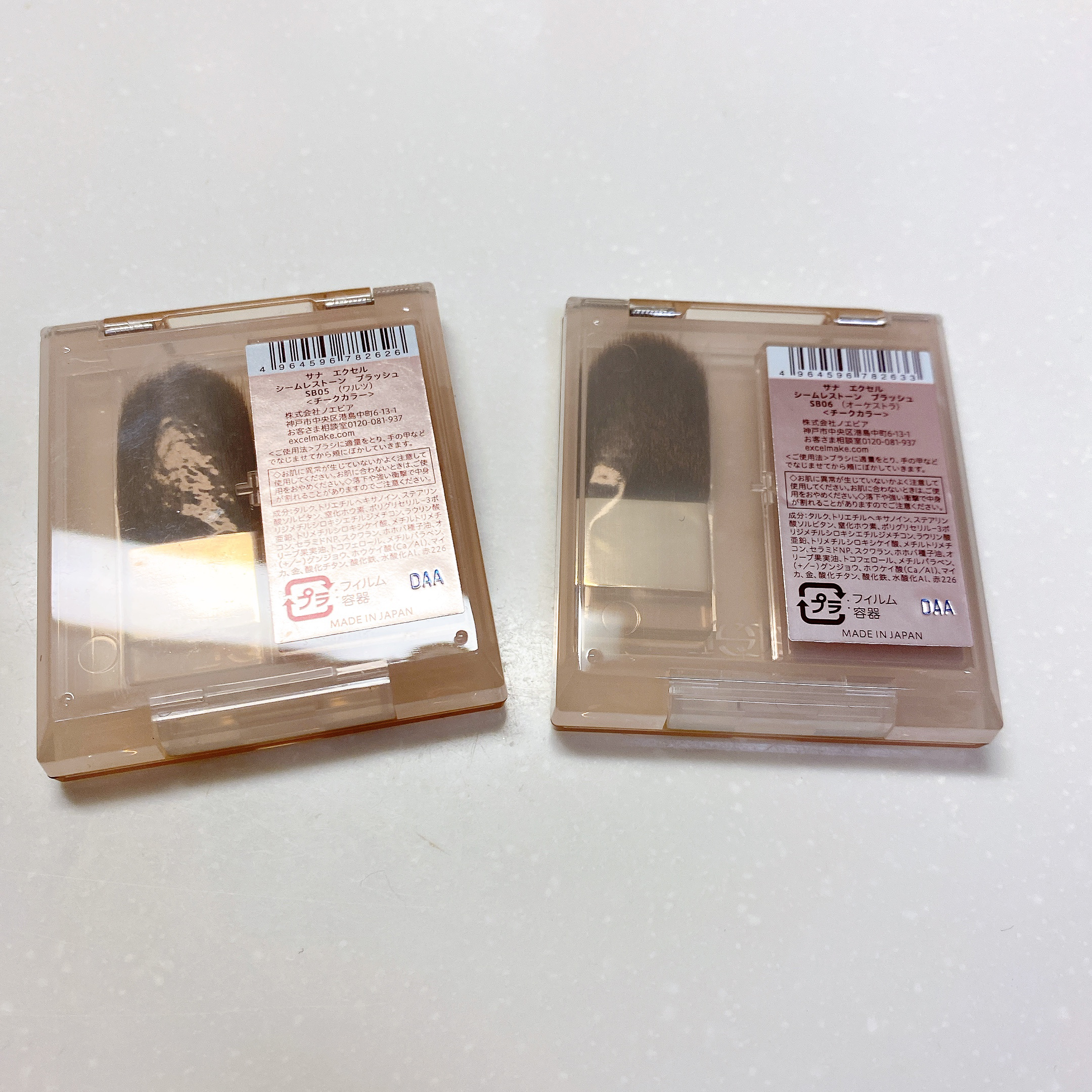 プチプラチークでかなりお気に入りの excel シームレストーン ブラッシュ ニュアンスカラーの SB05 ワルツ SB06 オーケストラ(どちらも限定)が登場して使い方の幅が広がりました。 何個も持ち歩くより一つにまとめると楽でした。 空いたケースは取っておくと、excelの単色アイシャドウ4色入るよ☺️🫶
