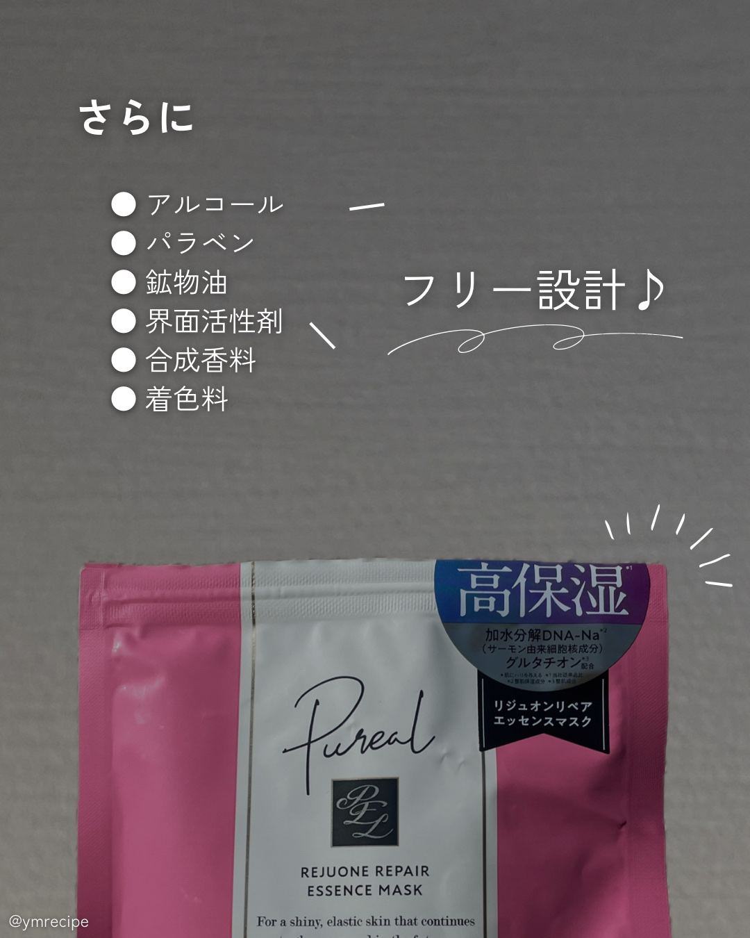 ピュレアさまからいただきました!ありがとうございます😊ピュレアリジュオンリペアエッセンスマスク¥770ピュレアリジュオンハイドレイトリペアエッセンスマスク1枚入で¥275ピュレアは黄色、水色、ピンクの種類があってピンクは高保湿が特徴のパックで...
