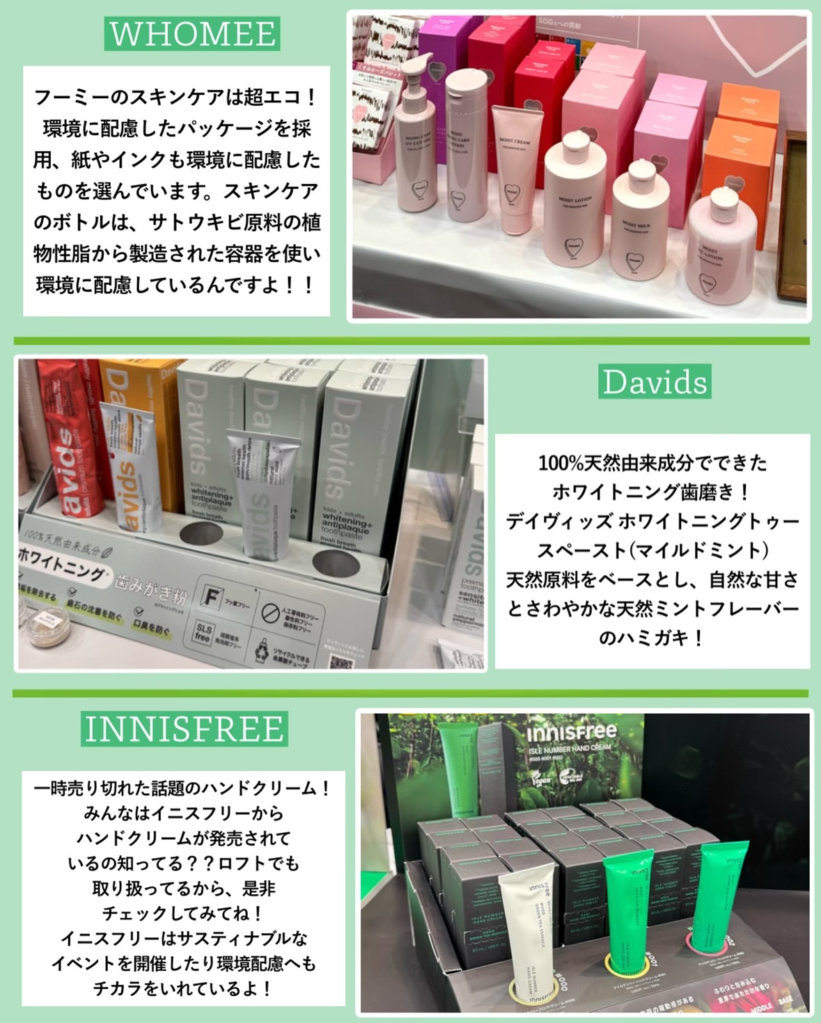 ISO16128(国際標準化機構が定めた世界共通の自然由来指数)の厳格な基準にて仕上げたオーガニックヘアケアブランド🌳 ロスフラワー香料(ジャスミン)を使用。ボトル容器にはバイオマスPET、ペアパックにはリサイクルPETを使用。 ♻️ 期間中「環境への配慮」「人・地域・社会への配慮」「回収リサイクルプログラム」をテーマに展開されており、「ロフト グリーンプロジェクト」では使用済み容器の回収などを行なっているよ!