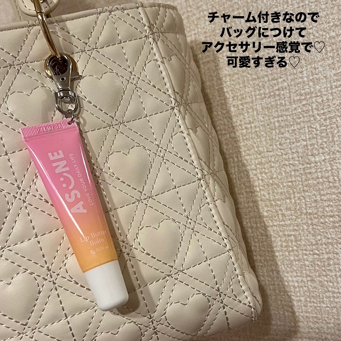 少し硬さのあるテクスチャーなんですが唇に塗ると溶けていきます。 ほんのりピンク色🩷で嫌なベタつきもなく甘い香りで使い心地がよかったです♡ 唇に塗るとしっとり保湿力があります◎ 唇の荒れを防ぎハリとツヤのある仕上がりに💋 チャームつきだからバッグや小物につけれて持ち運びに便利です(*ˊᵕˋ*)ノ" パケとロゴデザインがかわいいです( *ˊᵕˋ)💞