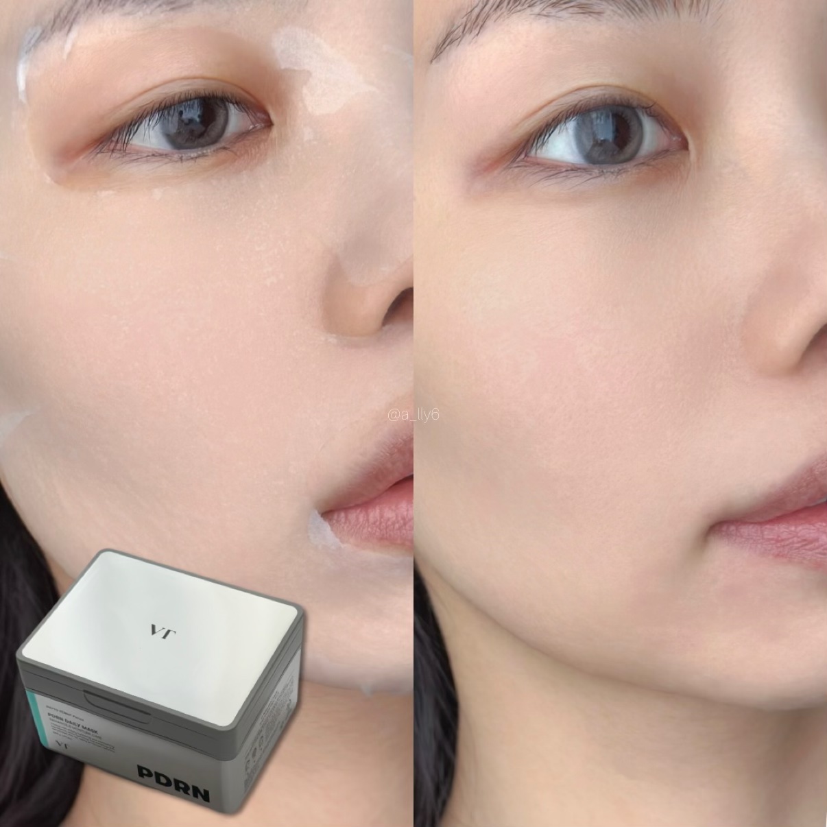 インナードライ・トラブル肌・ハリケアに効果的な植物性PDRN配合アイテム🐯 VTのマスク大好きっっっっ!! 植物性PDRNの他に、5種セラミドコンプレックス、ヒアルロン酸、パンテノール、スクワラン、トコフェノール配合。 乳液みたいな軽いテクスチャーが伸びが良くて、内側から潤う感じがクセになる...🥺💚