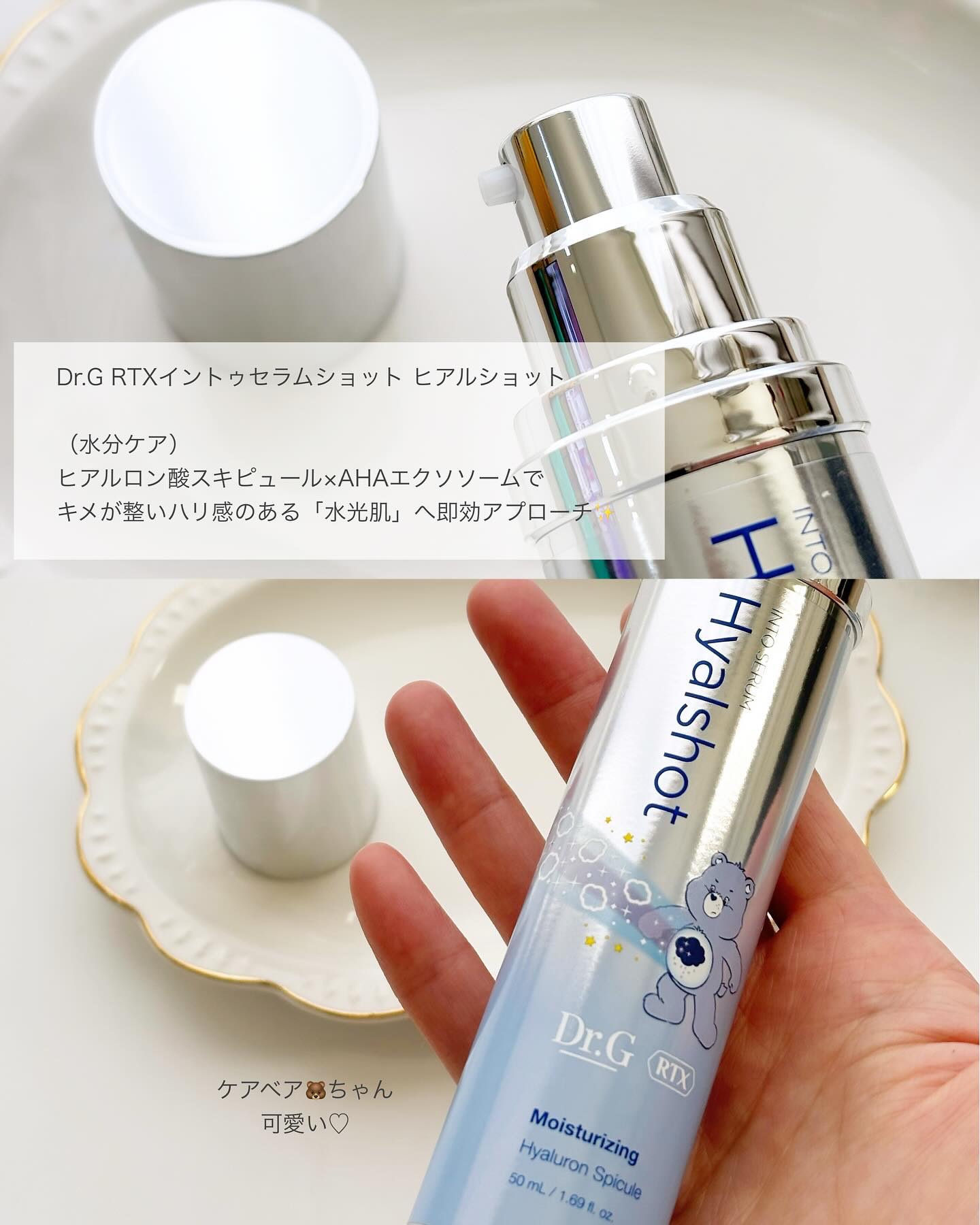 たった3秒で角質20層まで満たす浸透力.ᐟ.ᐟ 大好きな𝐶𝑎𝑟𝑒 𝐵𝑒𝑎𝑟𝑠とのコラボのセラム3種 可愛いすぎてスキンケアの時間が楽しくなっちゃいます スピキュールが90万個も入っているので短時間で肌の変化が◎ さらに毛穴より2600倍も小さい美容成分を含んだエクソソームで速く!深く!美容液を浸透 肌の奥から引き締める レチナール𝑋 セラミドエクソソーム →肌を引き上げる弾力ハリケア