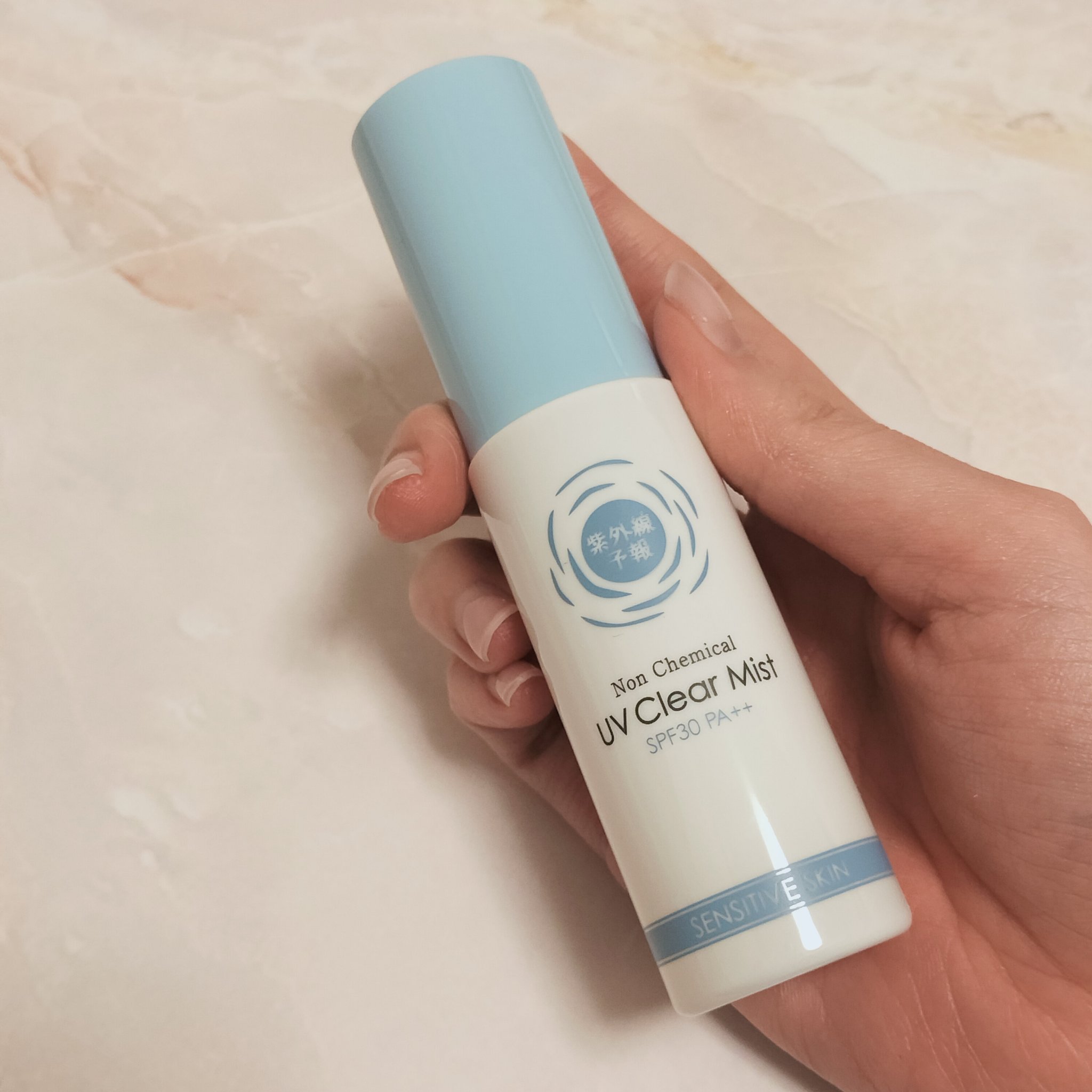 白浮きしにくい日やけ止めミストで、UVだけでなく、ブルーライトや花粉・PM2.5とマルチにカットしてくれるのが特徴とのこと! ミストが細かめ&サラッとしたテクスチャーで、とても軽い使用感に感じました😳 メイクの上から使用できるのも嬉しいポイント!
