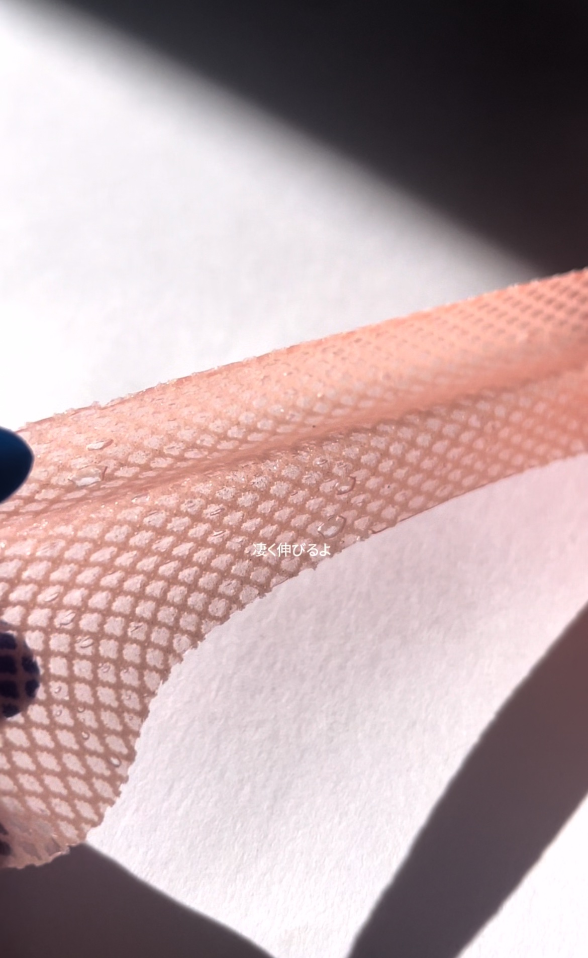 高弾性スパンマトリックスファイバー ひし形ダイヤモンドバターンで編み込まれ、しっかり伸びて肌の曲線にぴったり密着 コラーゲンキペプチド配合の密着リフテイングジェル 弾力性のあるパワーリフトファイバーに7種類のペプチドとコラーゲンエッセンスをたっぷり配合♪ 肌にしっかりと密着して皮膚を引き上げてくれる感覚がして驚き✨