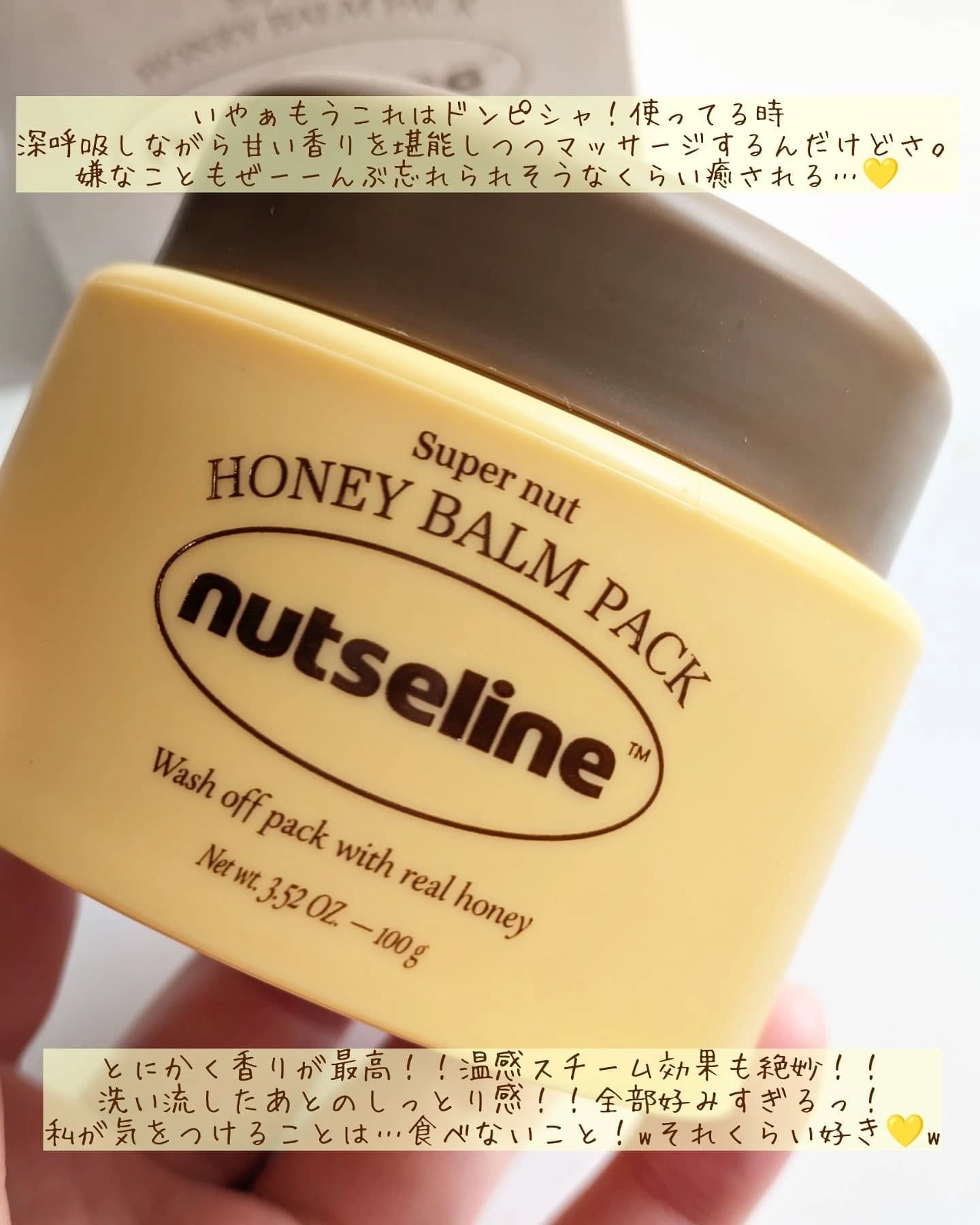 nutseline(ナッセリン) 蜂蜜バームパック韓国でモデルさんやアイドルも愛用されてる注目のナッセリン💛まるで本物の蜂蜜🍯!?のようなテクスチャー✨スパチュラですくう時は重めのかためですが、肌にのせてくるくる馴染ませると白くとろけて伸ばし...