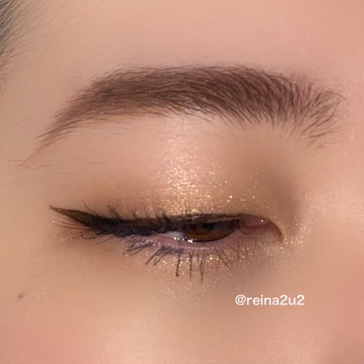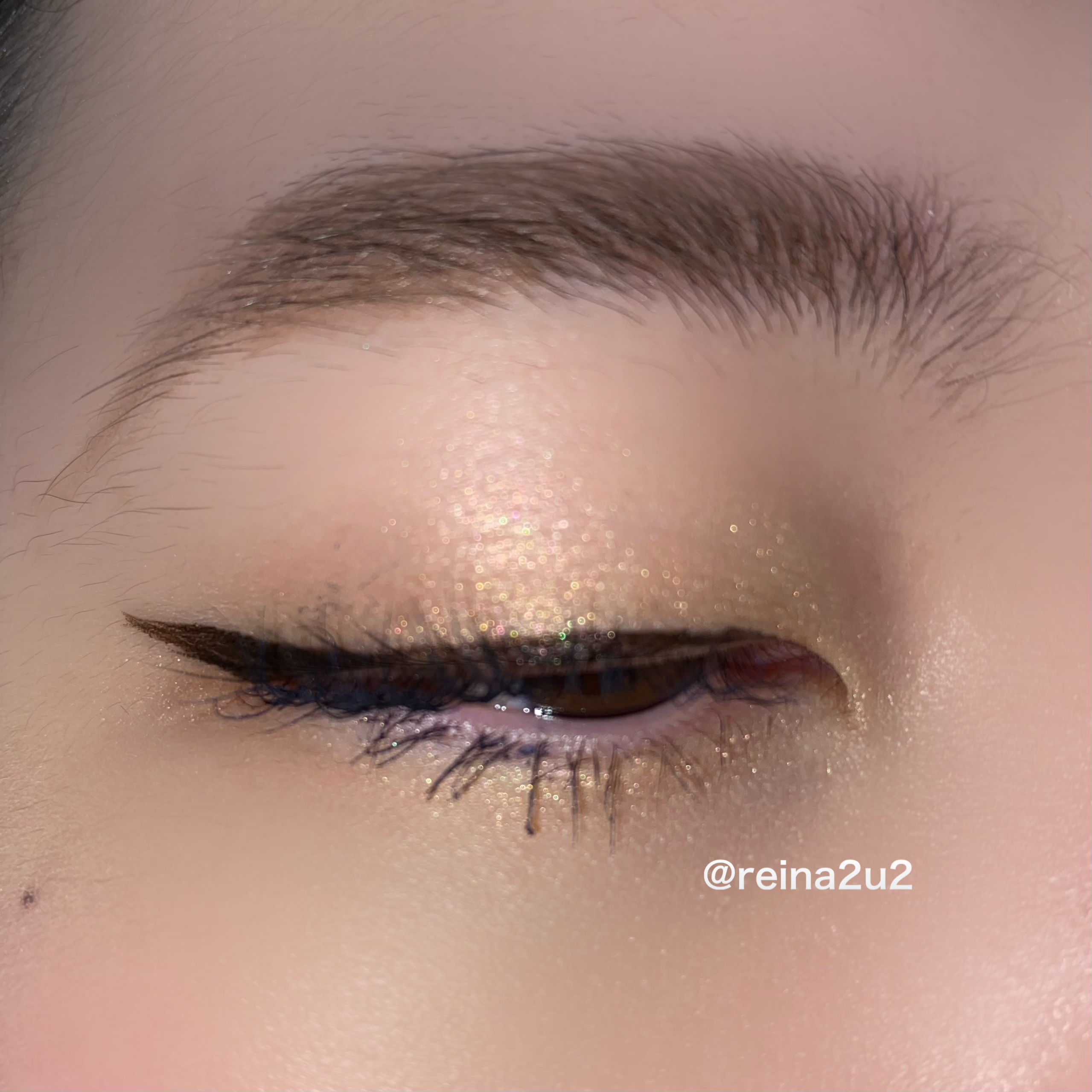 上まぶたはグリーンを二重幅に広げ、ゴールドを上から重ねてブレンディングブラシでぼかし、シルバーを指で乗せる。 シルバーのラメがとっても綺麗で思ったよりも使いやすい色です🥰 華やかなメイクがしたい時にぴったりです✨