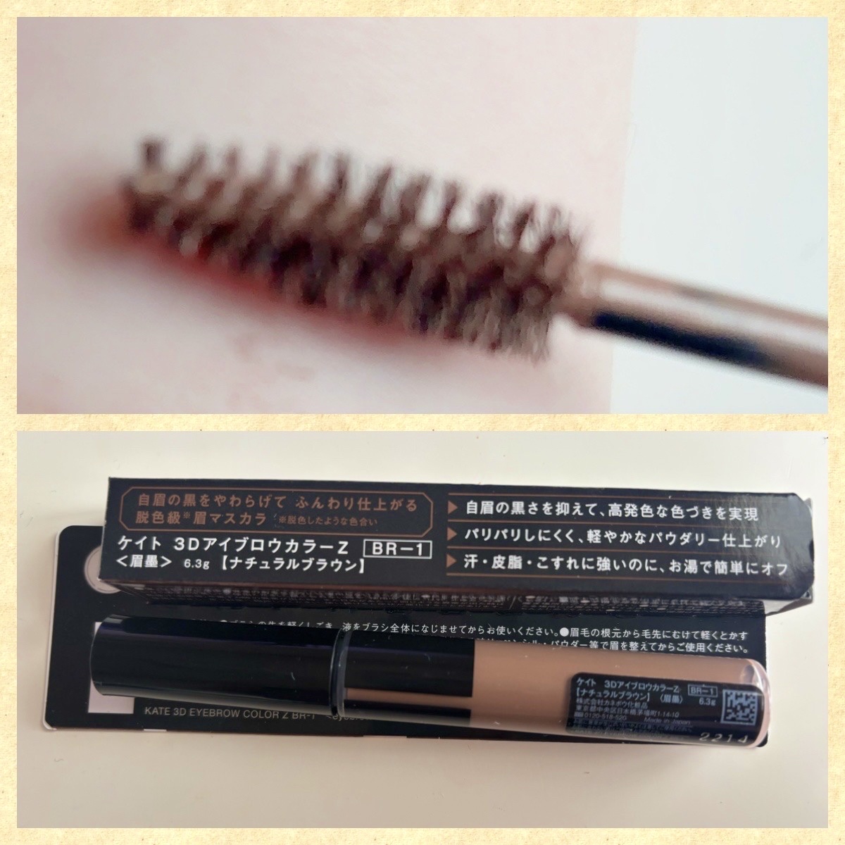 - 自眉の黒をやわらげて、ふんわり自然に仕上がる。#脱色級※眉マスカラ。 1 自眉の「黒」を抑える発色 自眉の黒を抑えるパールを配合、高発色な色づきを実現 2 軽やかなパウダリー仕上がり 粉体をたっぷり含んだ液だから乾いた後パリパリしにくい ふんわり軽やかなパウダリー仕上がりに 3 自然な自眉感カラー さりげなく自眉になりすますやわらかなグレイッシュカラー 毛質をソフトに見せながら自然に色づける 4 地肌につきにくい小回りブラシ ●ひと塗りでしっかり色づける ●目もとの凹凸にフィットして眉頭・眉尻まで塗りやすく地肌につきにくい ◆汗、皮脂、こすれに強い ◆お湯オフタイプ ※脱色したような色合い