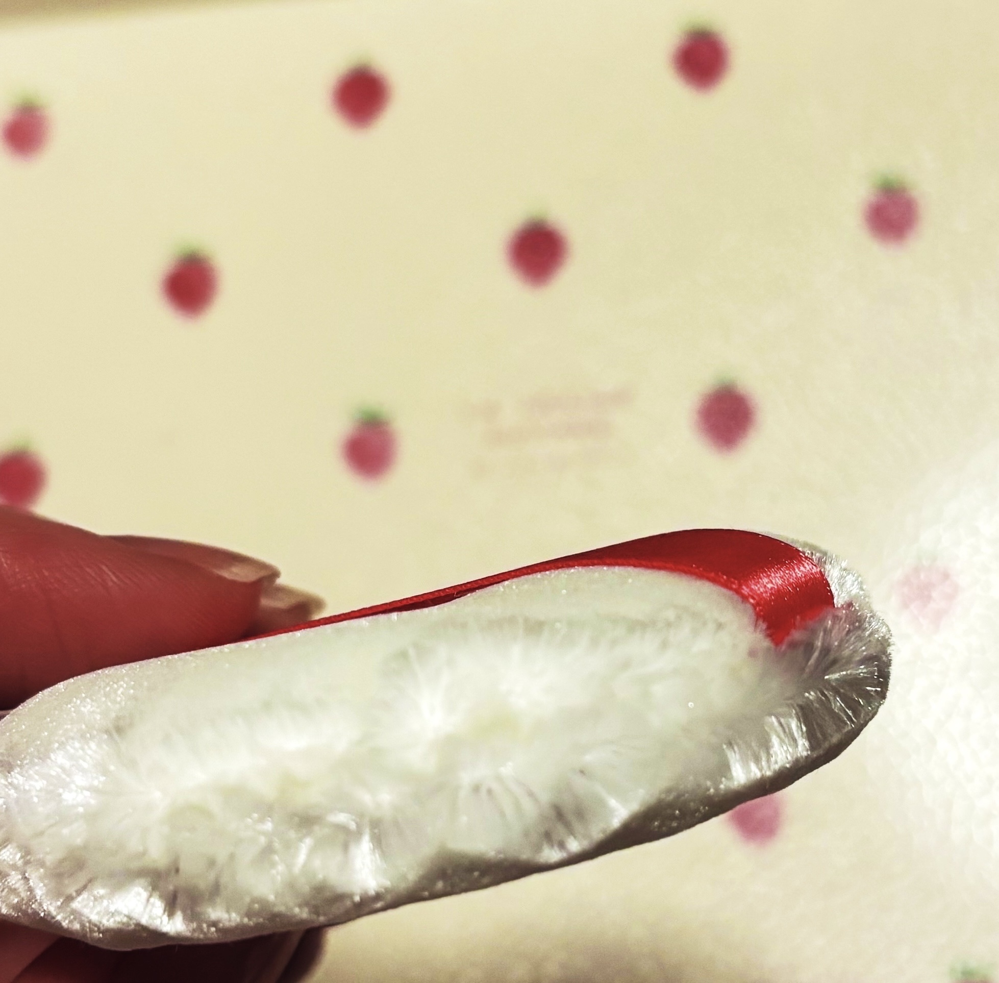 ビロード織生地を採用していて、光沢感があり、肌当たりがなめらかでした。 毛足が長めなので、粉含みがよかったです。 ちょっと厚めなので、薄型のパウダーケースには入らないかな。 直径:約60mm、厚み:約< b>17mm
