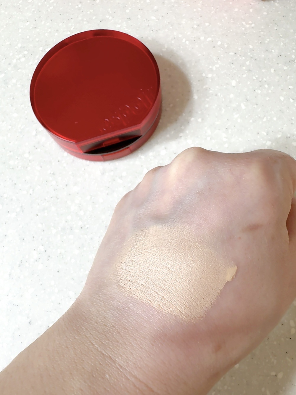 ベルベットのようになめらかで薄いテクスチャーが驚くほど軽くフィットし、しっかりとカバーしてくれるセミマットクッション 肌の悩みもしっかりカバー 肌キメとくすみを一度にカバー! 薄づきなのにカバー力が良く、手の甲に塗ってる写真は重ねづけ無しの一度塗りです。