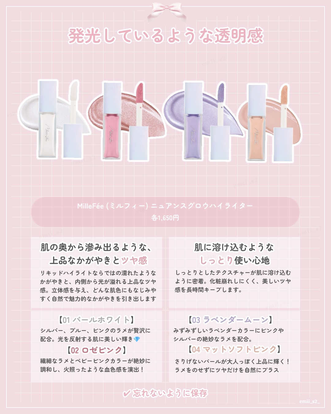 | ハイライト・シェーディングランキング第72位 | 非常に繊細なツヤめきで、ギラギラした華美な光沢ではなく、素肌そのものが潤って輝いているように見えます✨ | 詳細を見る | |