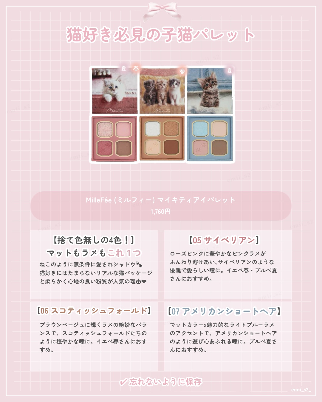 MilleFée ミャオパウズアイシャドウパレット | 1,760円 |