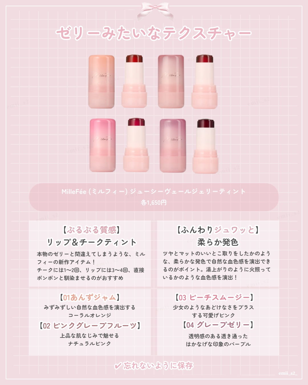 | リップティントランキング第3位 | 重ねて塗っても、ちゅるんと透け感が残って明るめカラーがとっても映える…💕色残りも◎ | 詳細を見る | ||