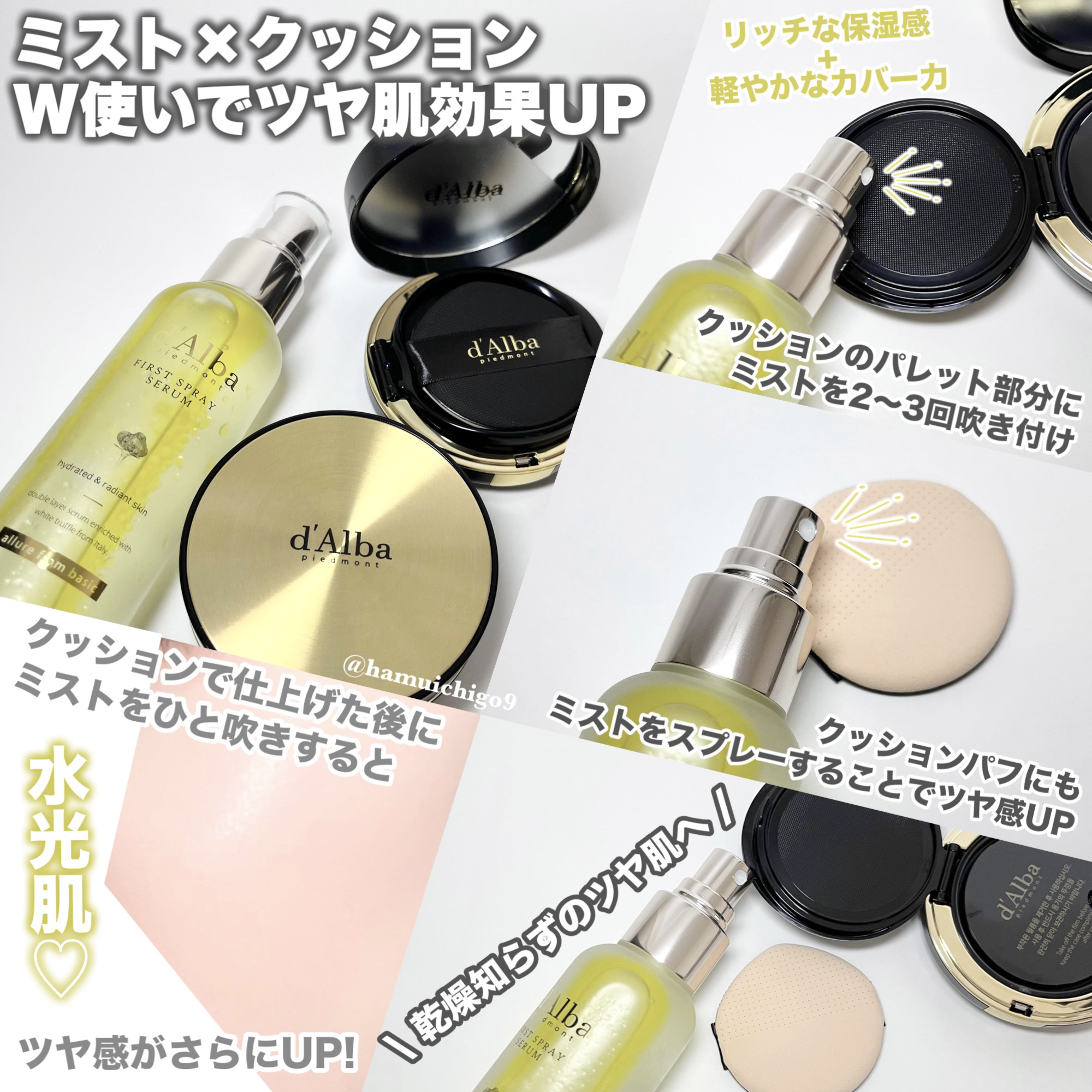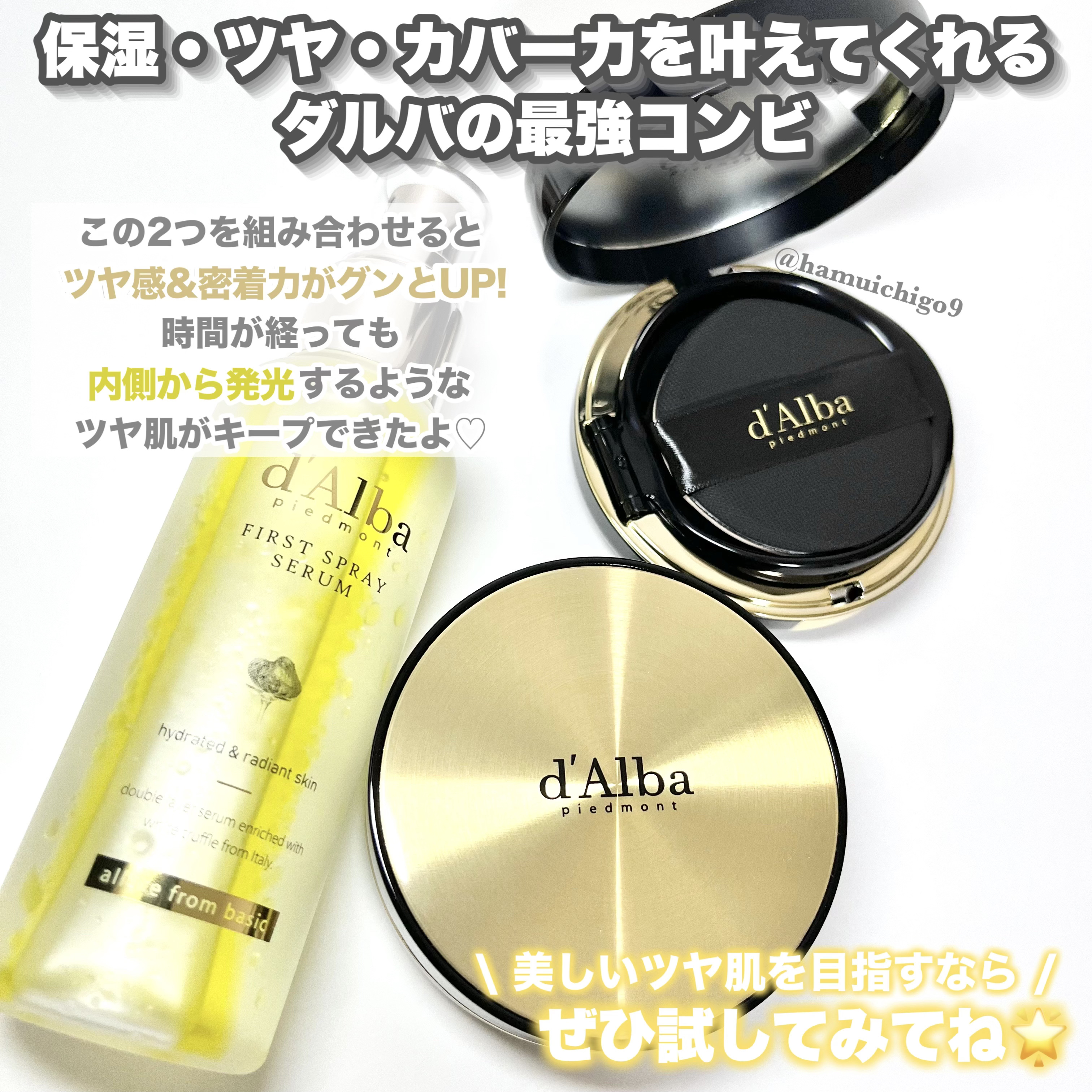 ダルバの大人気のホワイトトリュフセラムミストとクッションファンデを一緒に使うとツヤ肌爆誕🫶 乾燥を感じず密着力も🆙しっとり肌に♡ そもそもこの2つを一緒に使っておくとメイク直しがあまり必要ないくらいキープ力もあるんだけど、 日中シュッとするだけでツヤ肌が復活するんだよね!ミストが細かいからメイクも崩れにくい◎