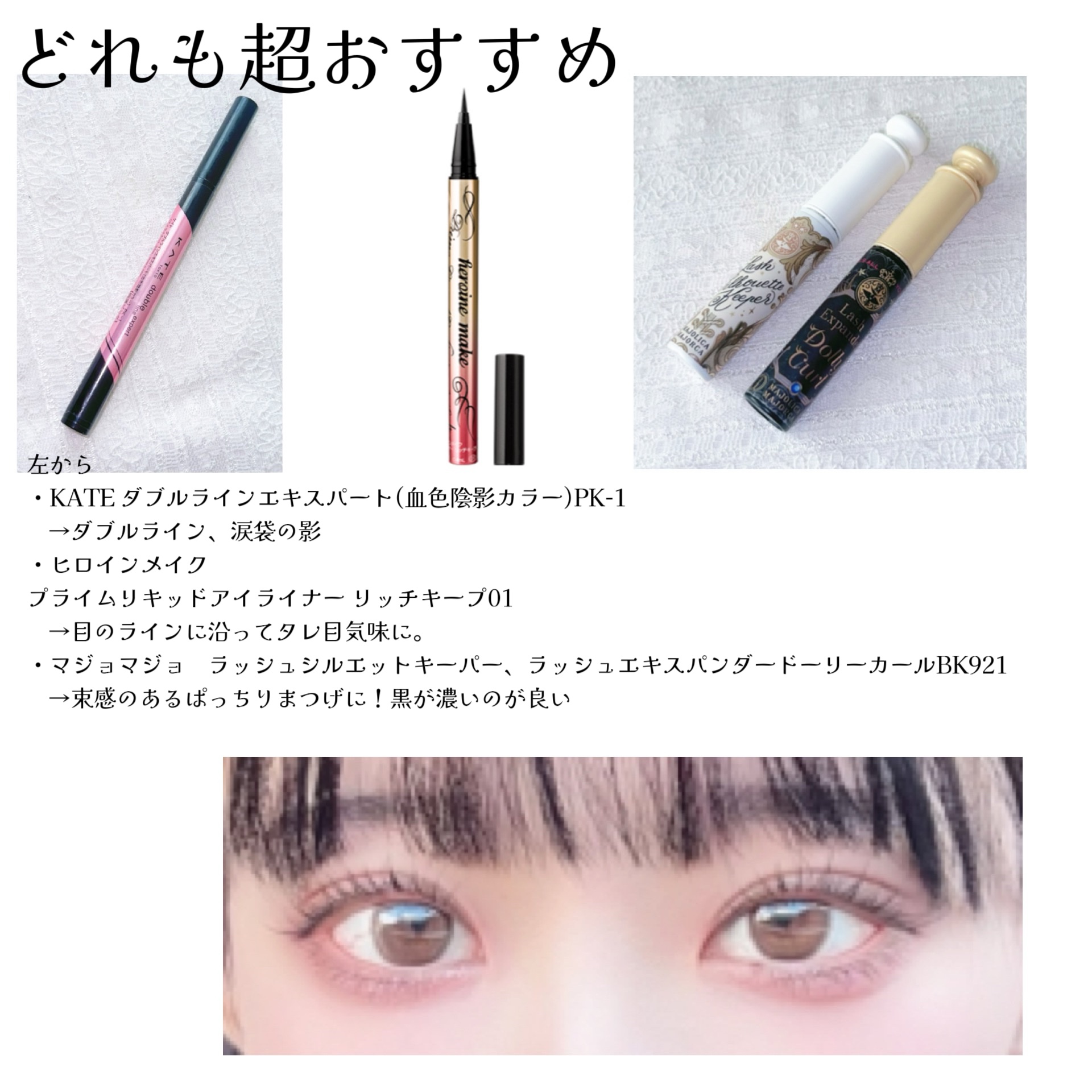 こういうカラコンは顔が怖く見えがちですが、これはギリ怖く見えない。 発色が良いので指で調節してぽんぽん塗るのがおすすめ。 キャンメイク のアイライナーの04番は涙丘を拡張するラインとして使用しました。 シルバーベースでザクザクラメのグリッター。ブルベの人におすすめ。 ダマにならずナチュラルにまつ毛を際立たせてくれるマスカラ。 ロムアンドジューシーラスティングティント #17 PLUM COKE
