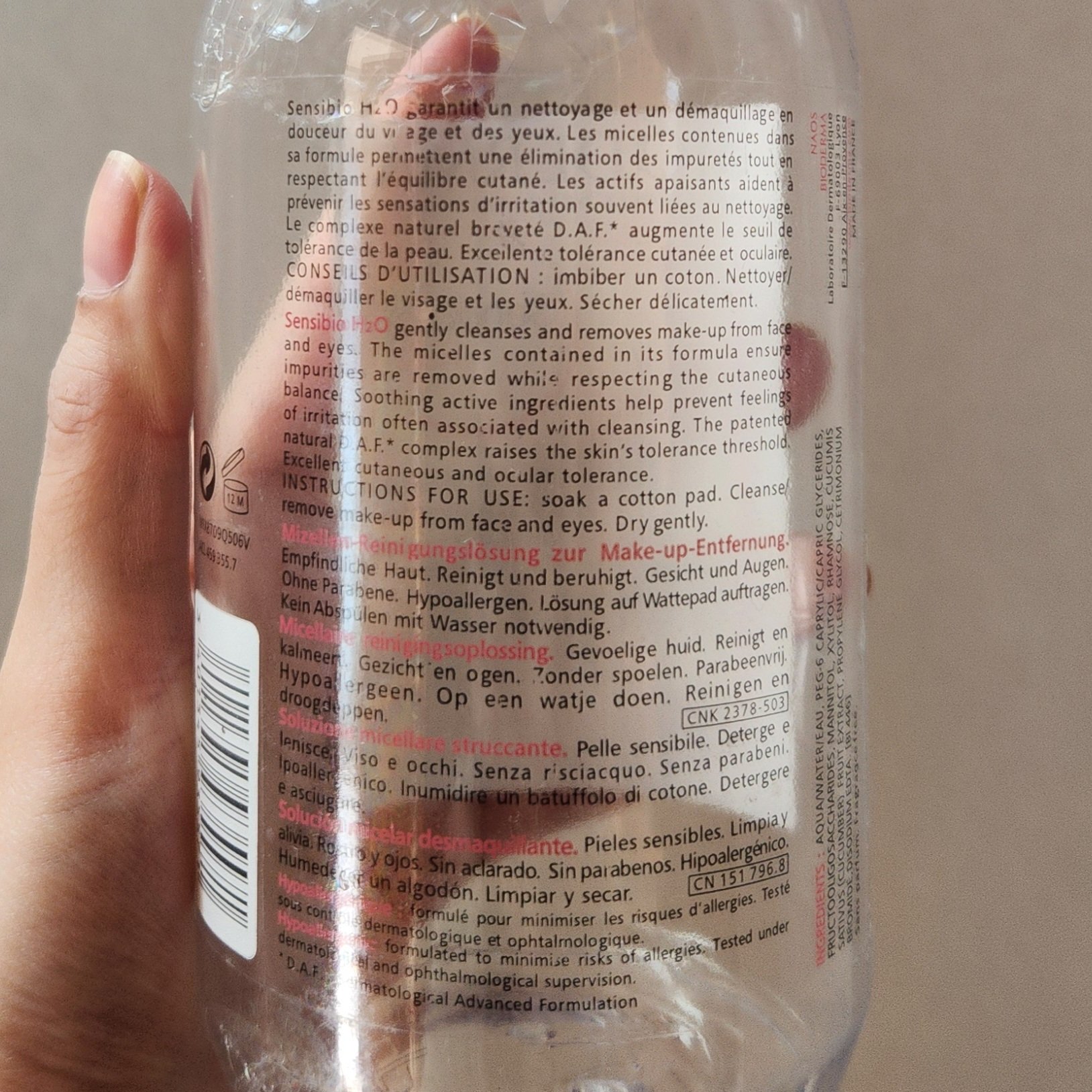 - ※2025年11月下旬〜250ml・500mlの商品パッケージを順次リニューアル。尚、これにかかる商品の返品・交換は承っておりません。 肌にやさしい使い心地で、マスカラなどのアイメイクも素早く落とします。 敏感肌さんも、面倒くさがりやさんも!手放せない!時短クレンジング水! コットンでふき取るだけ。1本でメイク落とし+洗顔+うるおいケア。 マスカラなどのアイメイクもきちんと落とし、肌の水分バランスを保ち、素肌にうるおいを与えます。 ■キュウリ果実エキス(保湿成分): 肌を整えます。 ■ビオデルマ独自のD.A.F.*複合体保湿成分配合。 敏感肌をやさしい使い心地で保湿し、うるおった肌へ導きます。 *D.A.F.(Dermatological Advanced Formulation) 保湿成分: マンニトール、キシリトール、ラムノース