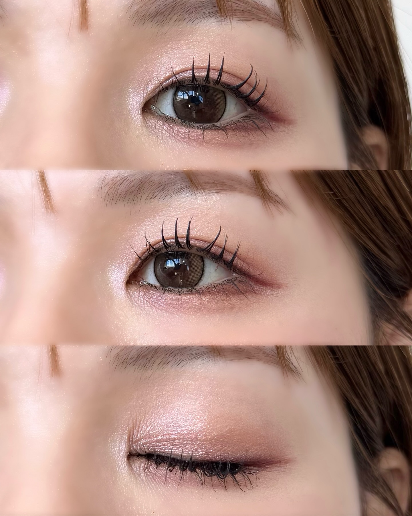 右上のピンクラメをベースに仕込んでメイクしたんだけどツヤと煌めき感えぐすぎる😳💎可愛い、、 そこに右下のカラーを重ねるとじんわり血色感が滲み出るような目元になるよ🦩 これは欠品店舗続出しそう🫣