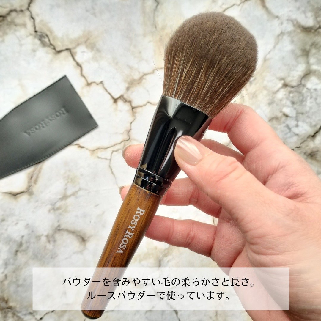 推しブラシに新型が‼️⋆⋆ROSYROSAパウダーブラシEX<アングルド>⋆⋆大好きなパウダーブラシEX。予備まで購入してストックしているほどお気に入りです。新型は小ぶりで斜めにカットされており、チークやハイライト、シェーディングなどにぴった...
