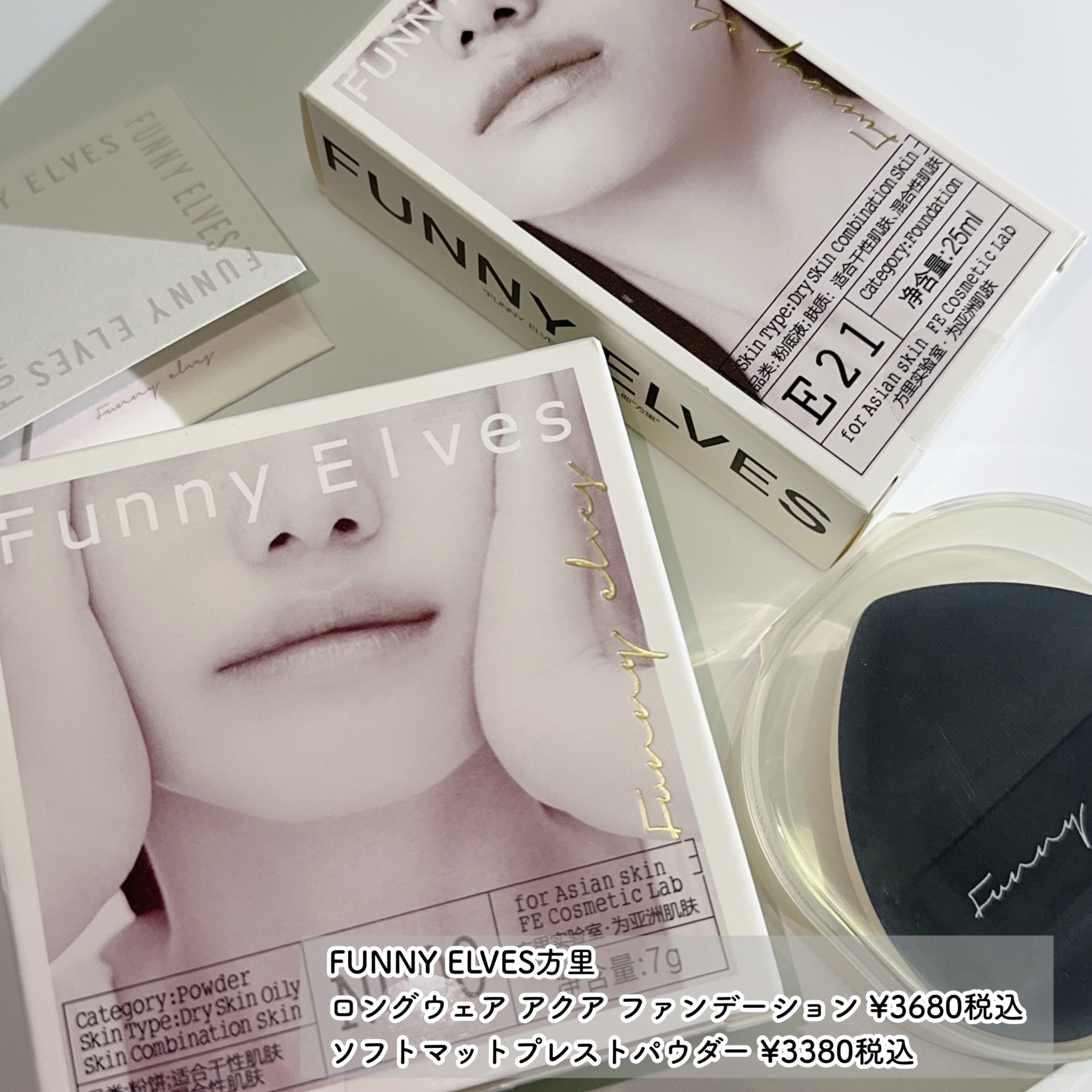 アジア人の肌のための新しいベースメイクを掲げる中国発のベースメイクブランド「FUNNY ELVES方里」✨ 毛穴を隠し、ふんわりなめらかなお肌に🤍肌のトーンも上がるし綺麗な仕上がりになるよ😳 ソフトマットプレストパウダーとロングウェア アクア ファンデーションを合わせて使えばまるでフィルターがかかったようなキレイなお肌になれちゃうよ😍✨