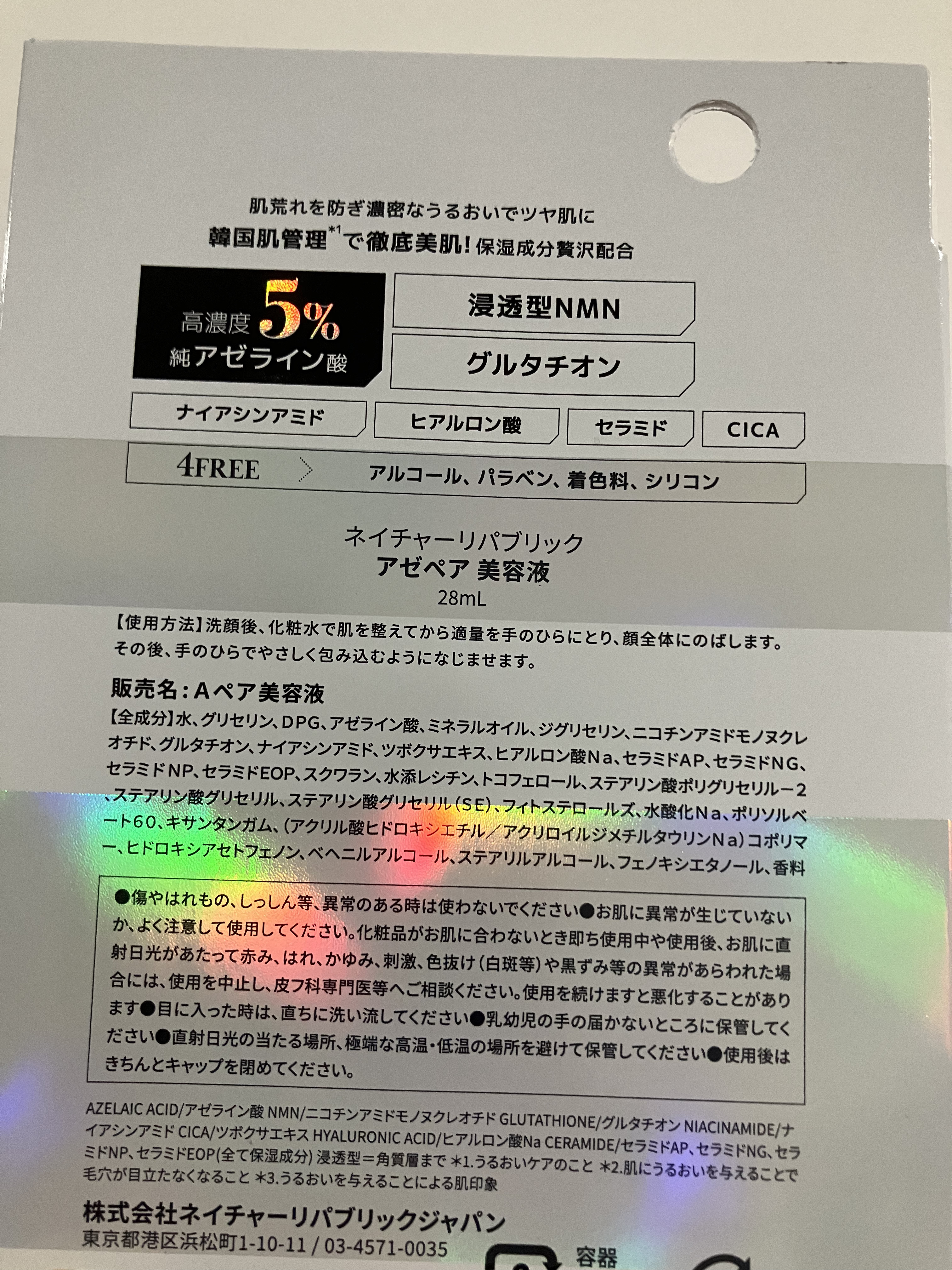 ネイチャーリパブリック初のMADE IN JAPAN開発🥺✨ アゼペア美容液をレビューです(๑•̀ㅂ•́)و✧ 毛穴・凸凹悩み・皮脂トラブル・肌荒れ防止・透明感など気になっている方におすすめのシリーズ🥺✨ アゼライン酸(保湿成分)が高濃度(5%)配合されているそう!!