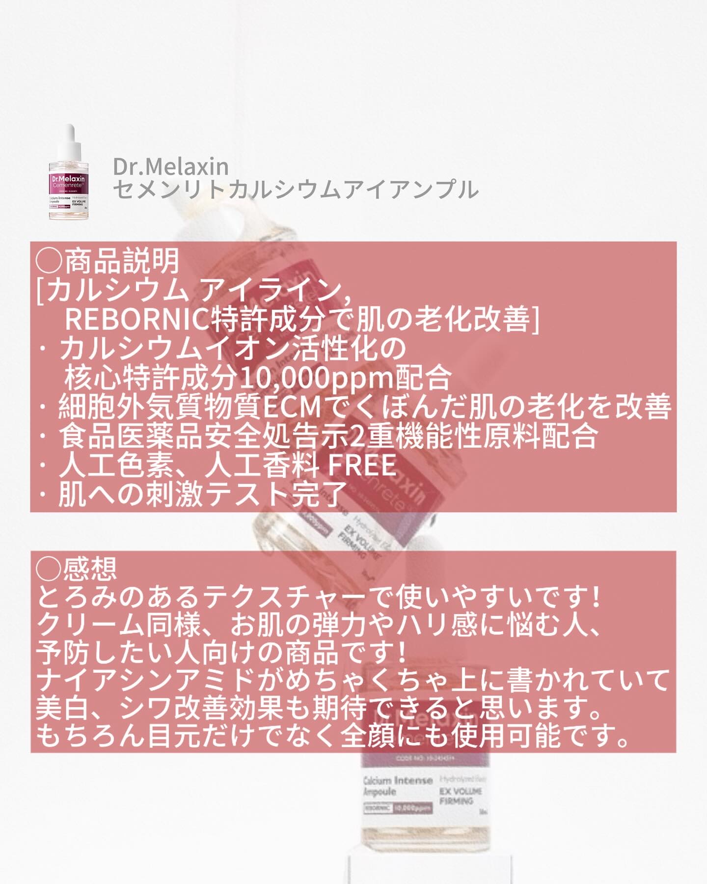 たるんだ目元をリフティングケアしてくれるセメントカルシウムボリュームアンプル。カルシウムイオン活性化の核心特許成分が10,000ppm配合されており、細胞外気質物質ECMでくぼんだ肌の老化をケアしてくれます🙌 とろみのあるテクスチャーで伸びが良くベタつきはありません。朝使っても化粧に影響しないのが嬉しいです☺️ 目元のクマが気になる方、これ1度使ってみてください‼︎ 全国のLOFTで購入可能で、Qoo10よりも少し安い価格で購入できるようです✨
