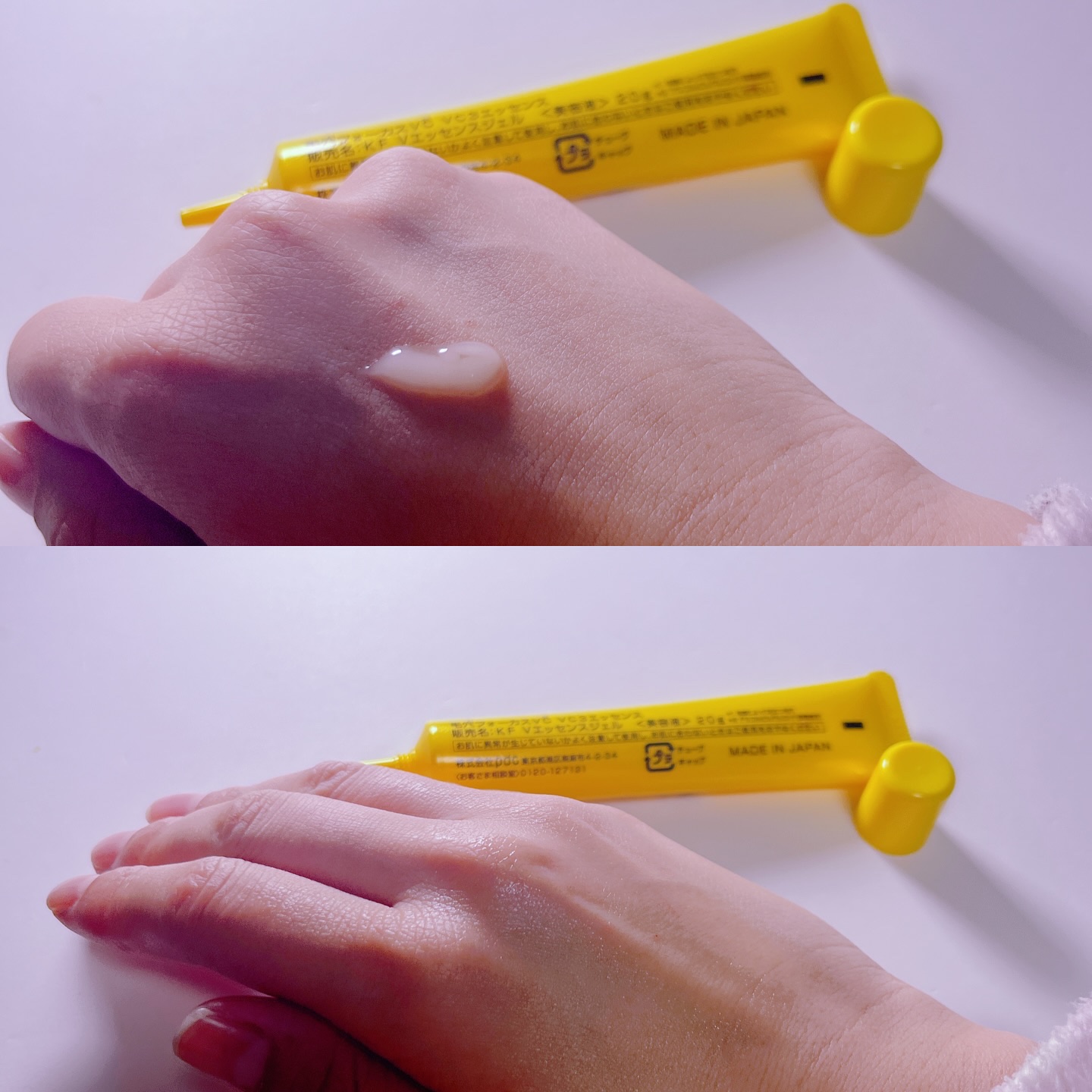 手に取ってみると、なめらかな感触で伸びがいいです。乗せた時密着感があります。 テクスチャは軽く肌馴染みが良く、軽くトーンアップしてくれます。 薄いオレンジ色ぽい感じで、薄い色のシミを少し隠してくれる感じです。 他のファンデーションと重ねてもモロモロがでるとかムラになるとかもなかったので使いやすいです。 手に取ると淡いベージュ色だけど、肌に乗せてみると白っぽくなり、肌色補整とトーンアップ効果があります。 日焼け止め効果もしっかりあるのでひとつあると便利かも。
