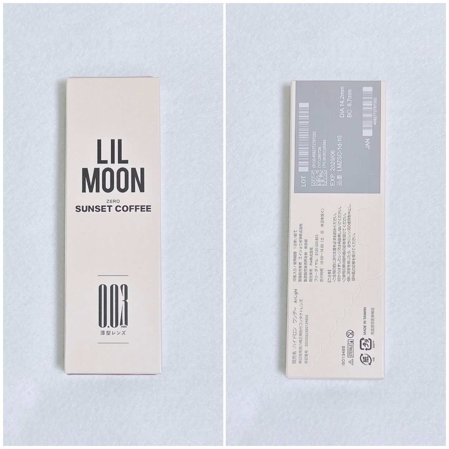 - "ZERO”感つけ心地、きらめきUP! (1)全度数0.03mm極薄*1*2 LILMOON(リルムーン)「0.03シリーズ」は、全度数レンズの中心厚が0.03㎜で、レンズが薄く厚みが少ない分、まるで裸眼のような快適な付け心地で異物感を感じにくいです。 (2) 全度数酸素透過率DK/t:45 『LIL MOON(リルムーン)』0.03シリーズは全度数レンズの酸素透過率DK/t:45、従来の含水率38%通常厚レンズと比べ2倍以上*2の酸素透過率を実現し、酸素不足による充血を軽減。高い保水力を持つMPCポリマーを保存液に配合し、乾燥や目のゴロゴロ感を軽減。 (3)気分で選べるクリアレンズとカラーレンズ 多彩な瞳も、自然な瞳も,カラコンとクリアレンズ、どちらも揃う。カラコンお試しサイズ2枚入りを用意、気軽にお試しできちゃう。幅広いラインナップで、瞳に自信と輝きをプラス、毎日のスタイルを自由に楽しめる! <クラッシュグレー> センス◎!やりすぎないアクセントで、馴染みのいいアッシュグレーアイ <サンセットコーヒー> ちゅるんと透明感UP演出! 落ち着いた水光ブラウンアイ <ジェントルピンク> クリっと瞳を際立たせるふんわり太フチと、 優しいほんのりピンクアイ <ゼロインク> ダークウッドをイメージしたブラックレンズ、透明感あふれるクリっとした瞳 <ゼロヘーゼル> 大人っぽいブラウンに差し込む ヘーゼルカラー、オシャレなブラウンアイ <ゼロチャコール> 落ち着いたダークグレーにブルー でアクセント、クールな大人アイ <レイクブルー> ほどよいフチ感で立体感見え重視、深みのあるダークブルーアイ *1:使用感には個人差があります *2:当社製品比較 カラーコンタクトレンズの不適正使用による眼障害の危険性等などがあります。 ●コンタクトレンズは高度管理医療機器です。不十分な洗浄・消毒など不適切なケアや、長時間・交換期間を超えた装用により、アレルギー性結膜炎、角膜感染症、角膜潰瘍等の重篤な眼障害が発生する危険性があります ●ご使用前に取扱説明書を確認してください 使用上の留意事項 ●眼科医院等を受診してからお求めください ●眼に異常を感じたら直ちにレンズ使用を中止し、お近くの眼科等で診察を受けてください ●医師の指示にしたがってご使用ください ●コンタクトレンズを装用する場合、自覚症状がなくても、眼科医院等での定期検査を受けてください ●レンズに不具合がある場合は使用しないでください