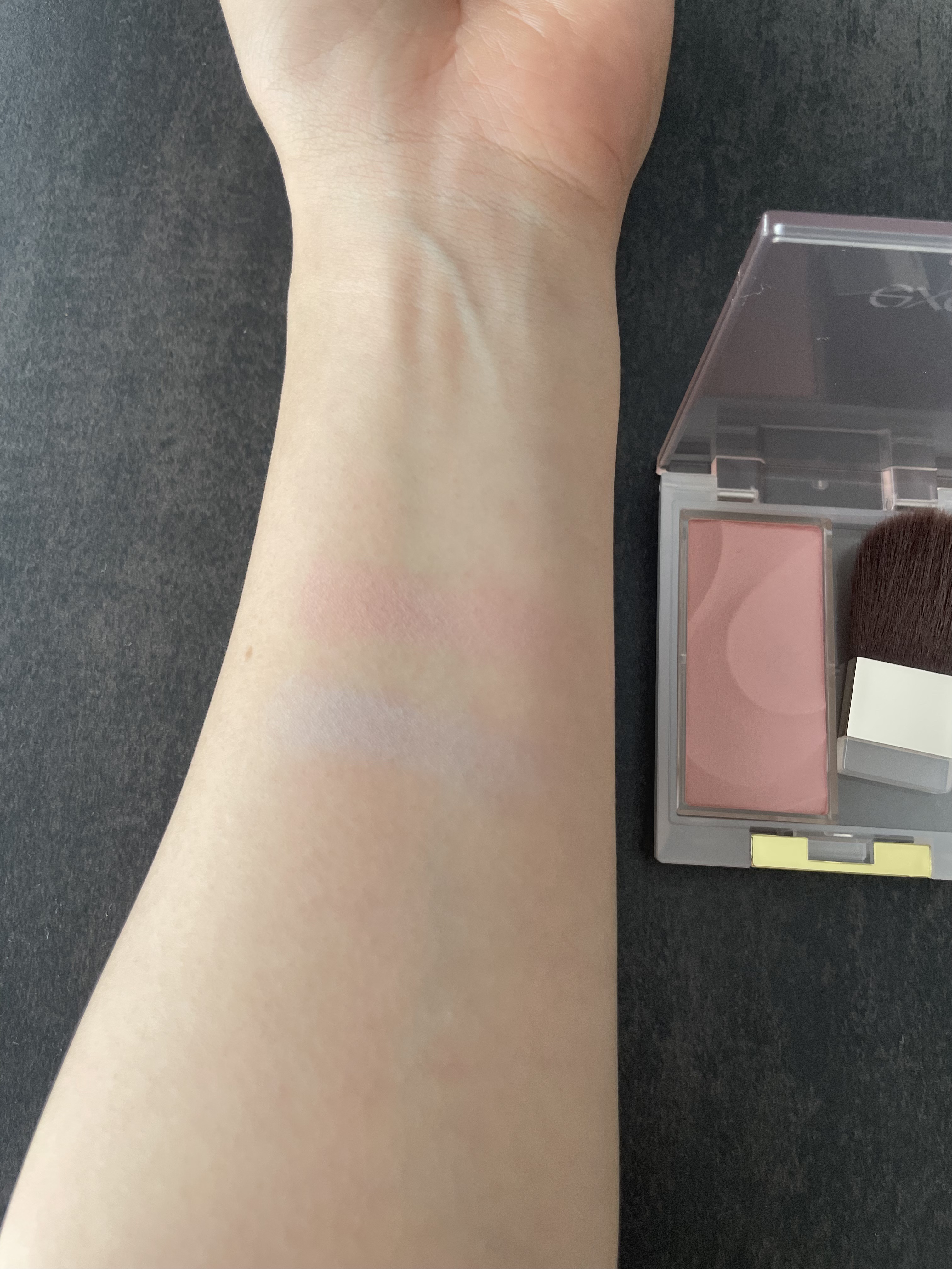 近くのドラストは軒並み売り切れだったこのカラー🩵 LOFTにあって即購入🛒 さらっとひとはけするだけで頬に透明感が宿る! チークとしても使えなくはないけどハイライトやニュアンスチェンジに使うのがおすすめ🙌 めちゃくちゃ繊細で自然なパール感が上品綺麗💎 さすがexcel、粉質もしっとりで粉飛び知らず!