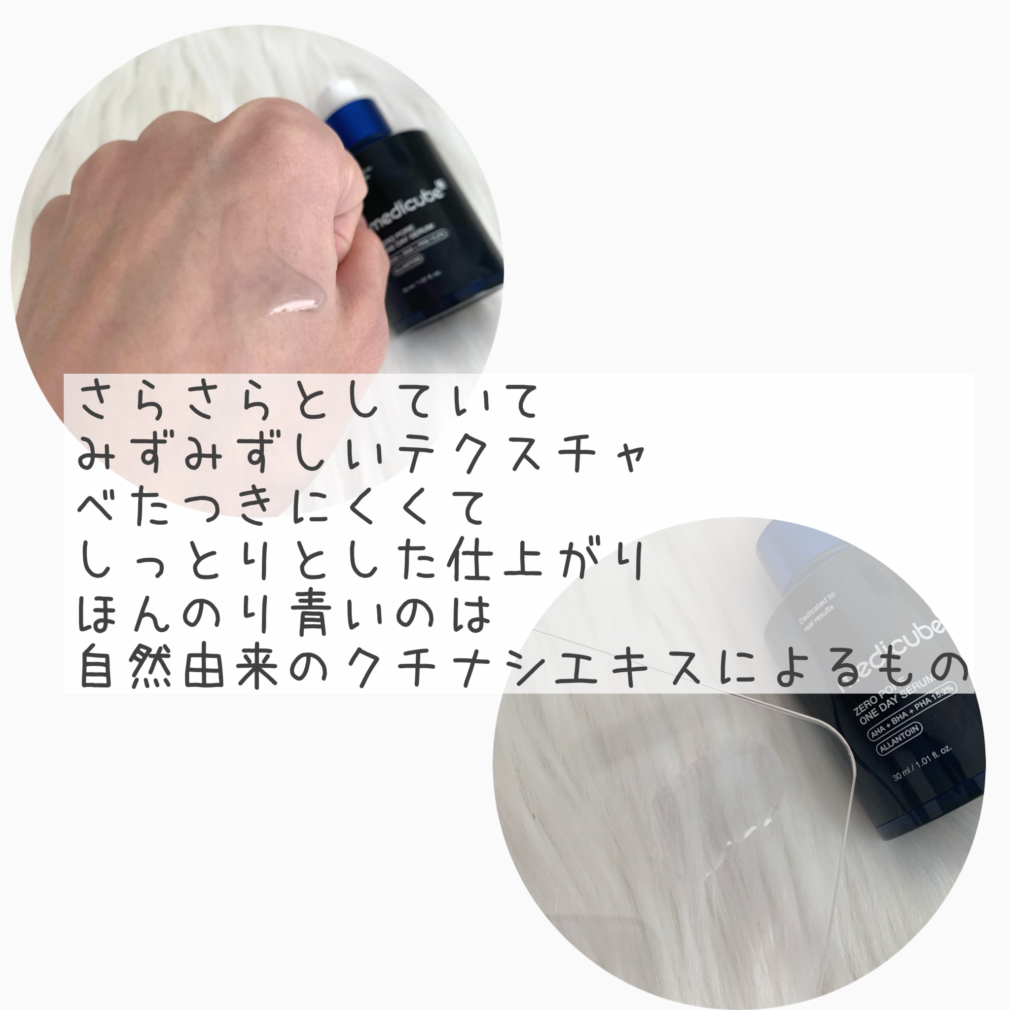 毛穴皮脂ケアに効果的なAHA+BHA+PHAが15.2%も含有 開き毛穴、黒ずみ毛穴、たるみ毛穴などに✨ ほんのりブルーカラー🩵 青色は自然由来成分のクチナシエキスによるものなんだって みずみずしいさらりテクスチャー しっとりとするような使い心地だよ