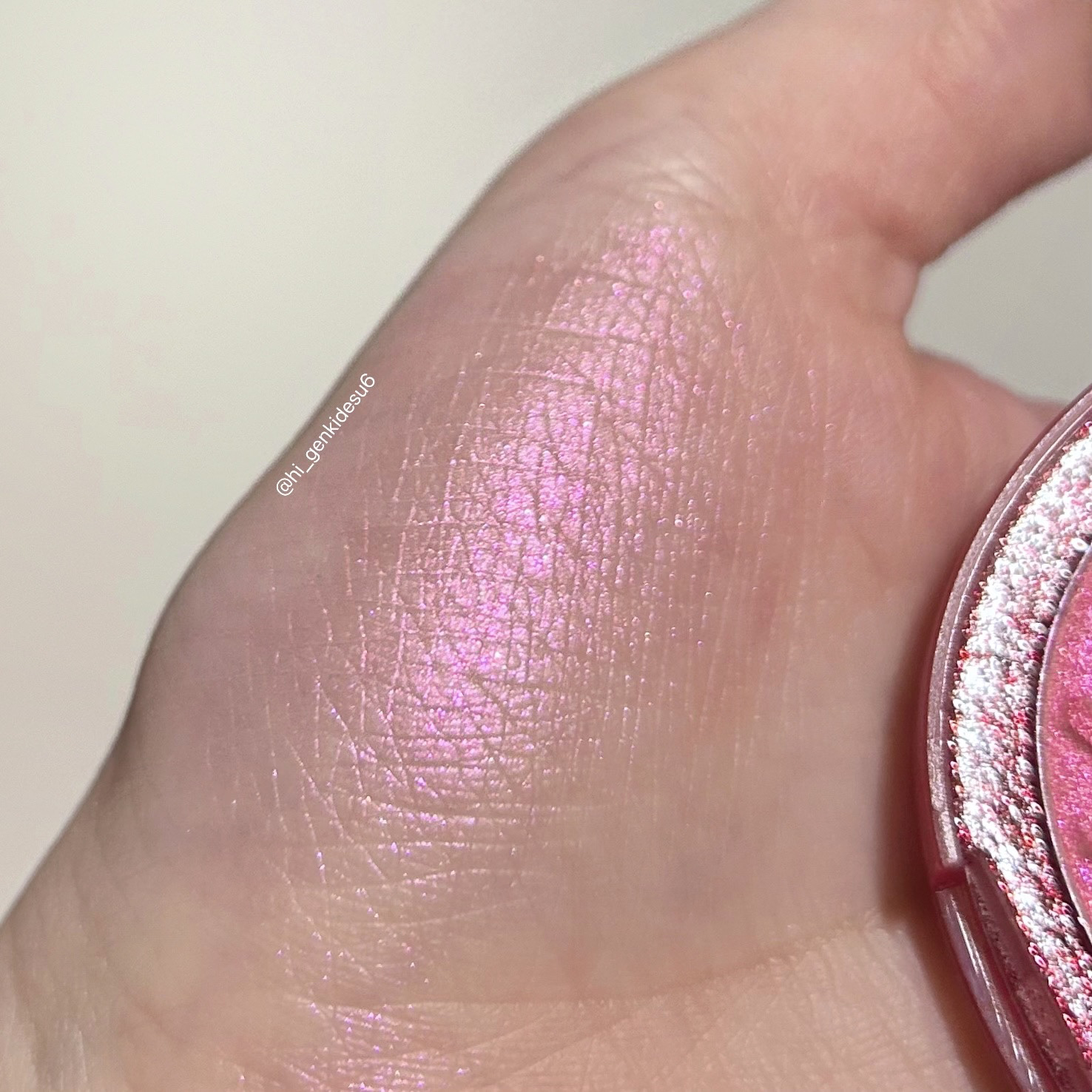 誕生石カラーを使った全12色展開で、どれも可愛いすぎる🩷 ✔︎ しっとり系のパウダーで密着度◎ ✔︎ ラメが飛び散らないから長時間キープ! 光の角度によって偏光の輝きが変わる✨ ほんのりとしたピンクみがあって、肌にのせるとパールのように華やかなツヤ感が出るよ🥰