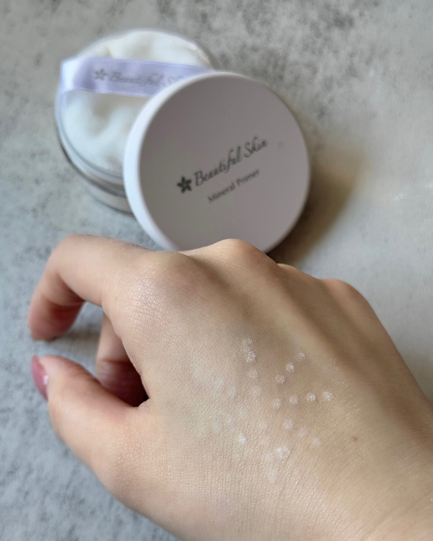 成分がとってもシンプルでお肌にやさしい処方 ミネラルプライマーは片くり粉のようなさらっさらのテクスチャー✨ なんとクズウコン根エキスとマイカの2つの成分のみでつくられています🙌 毛穴をナチュラルにカバーし ベタつきを抑えてさらさらな状態にしてくれます✨ SPF50+PA++++なのも心強いです☀️ 色白ブルベですが赤みが出やすいのでお色はヌーディライトN1にしました🙌