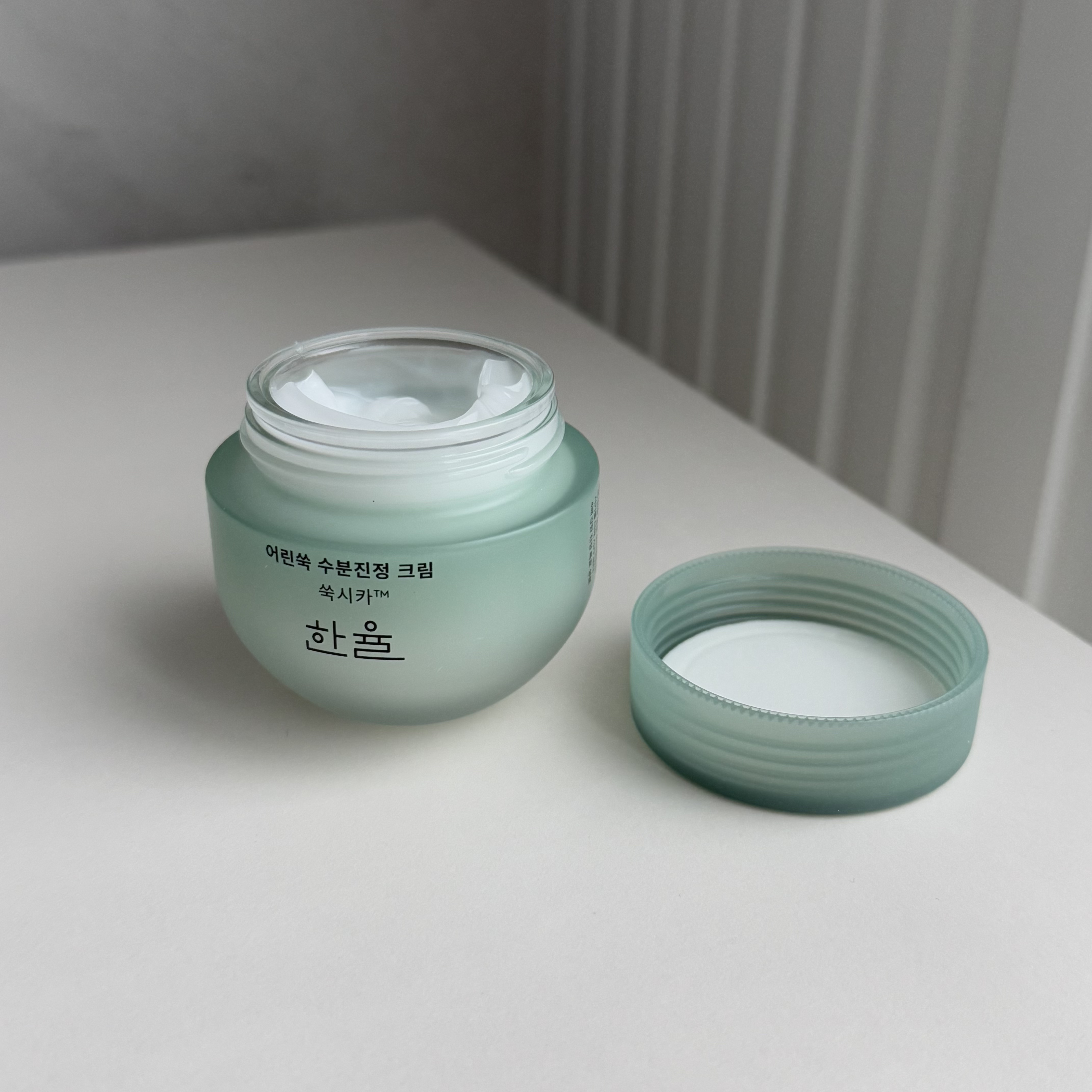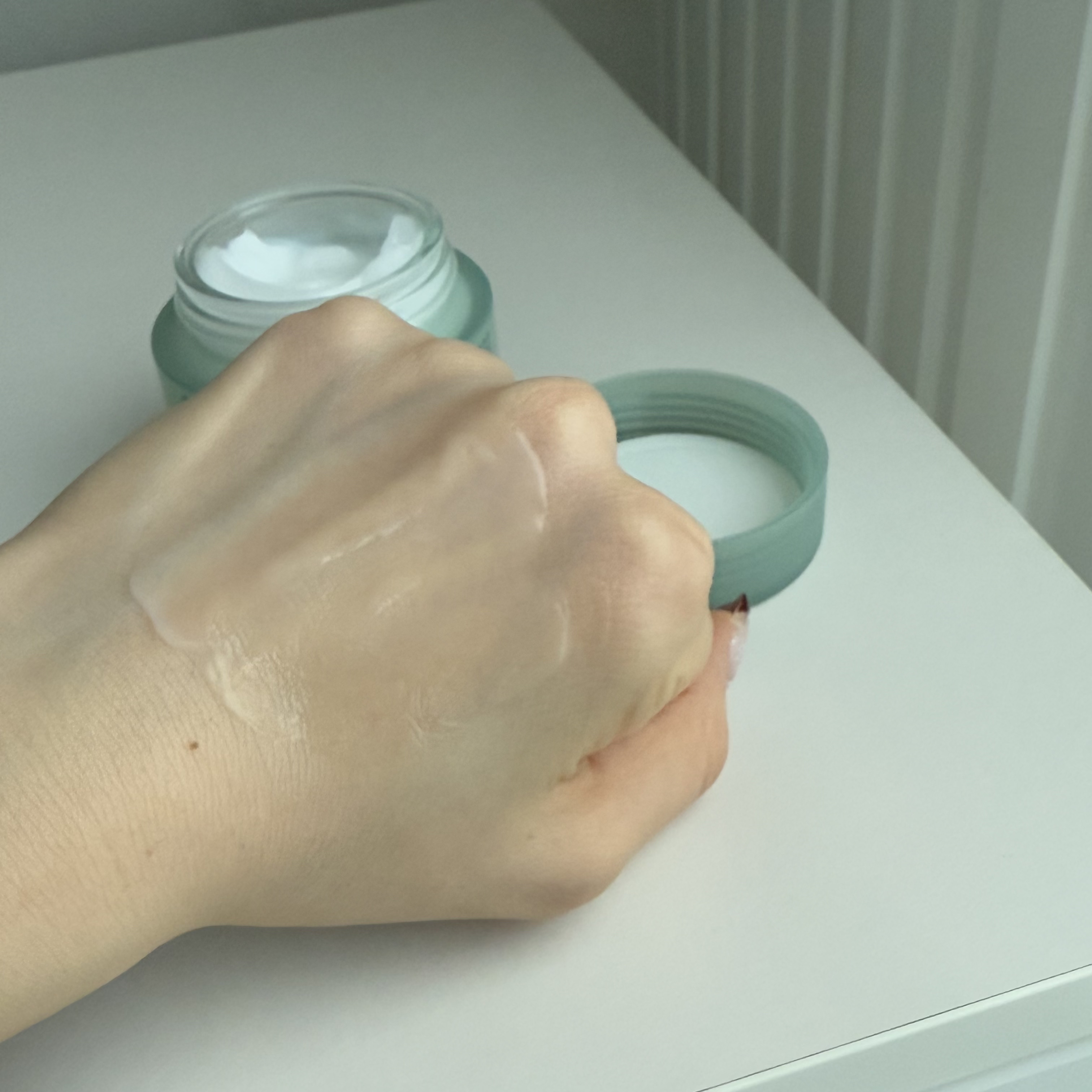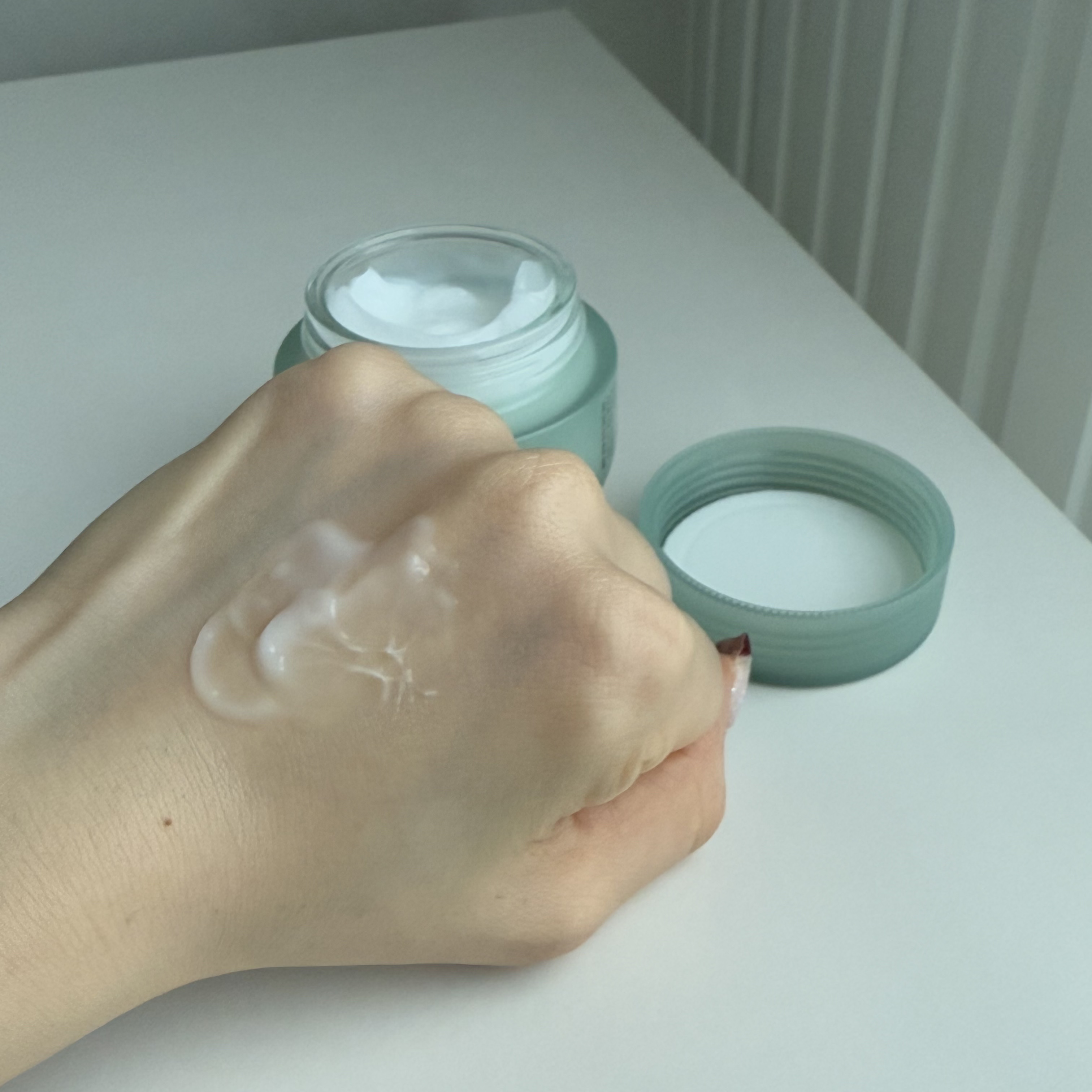 ヨモギシカが保湿力抜群だそうで、肌が潤ってみずみずしい肌に🩷 クリームは重めのテクスチャで、でも伸びがいいのでコスパもよし☺️👍 ニキビ肌にも安心な低刺激クリームなので、ぬっても滲みないし快適です✨
