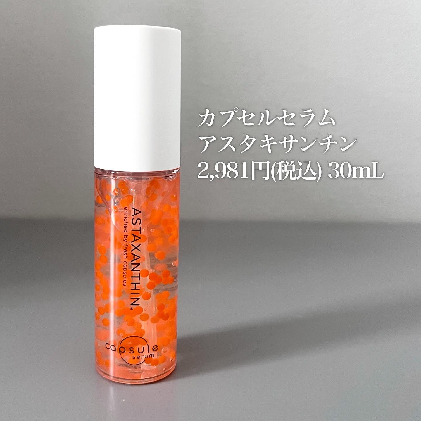 独自技術のカプセル製法によってデリケートな高濃度成分をカプセルに凝縮し、ダイレクトにお肌に届けることで気になる肌悩みにアプローチしてくれます。 オレンジのアスタキサンチンは高い抗酸化力を持ち、お肌のハリ、ツヤに効果的なんだって🥰 かなりとろみがある濃密テクスチャーで、肌馴にピタっと入っていく感じが好き♥️