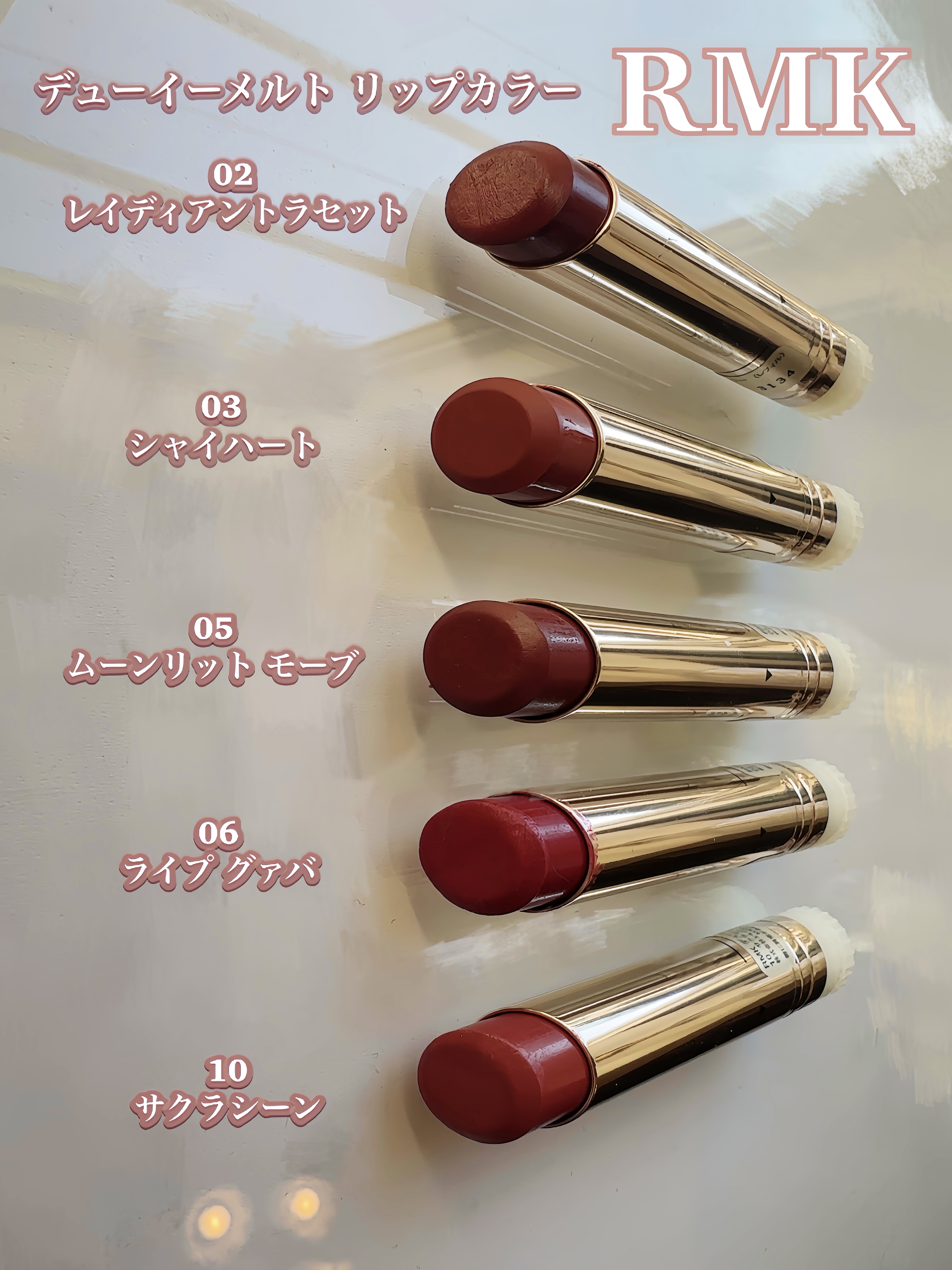 【RMKデューイーメルトリップカラー】大バズりした本気で落ちないリップ🔥ずっと品薄がつづいている人気商品ですが昨年GETしていました‼︎透明感あふれる澄んだツヤと発色のよさ、さらにその色ツヤのもちまで実現したリップカラー。濡れたようにつやめき...