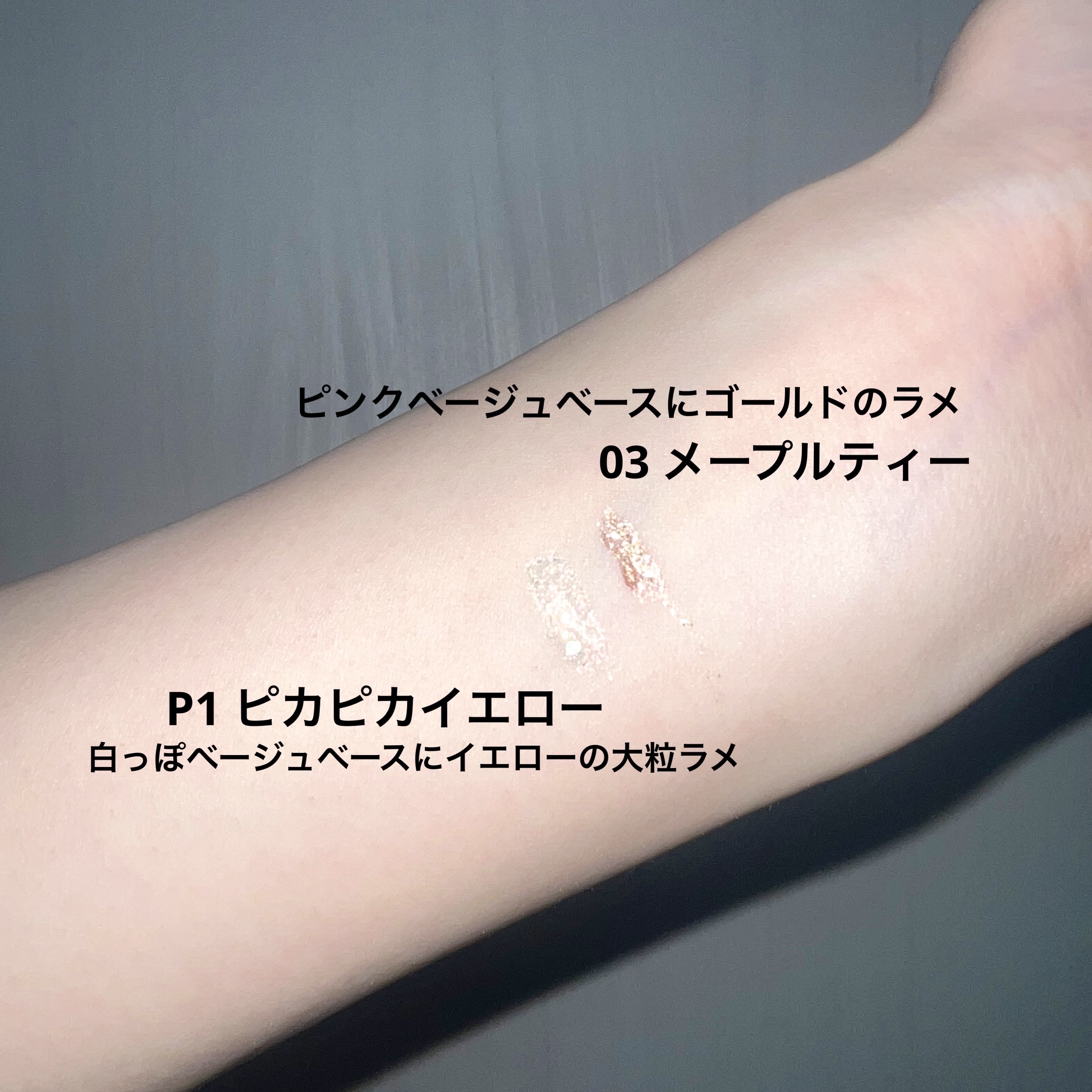 | リキッドアイシャドウランキング第2位 | 中に入っている偏光オーロララメの大きさがまた絶妙で、そのまま塗って使っても良いんだけど瞼にラメを乗せる感じで使ってもキラキラで可愛いよ | 詳細を見る | |