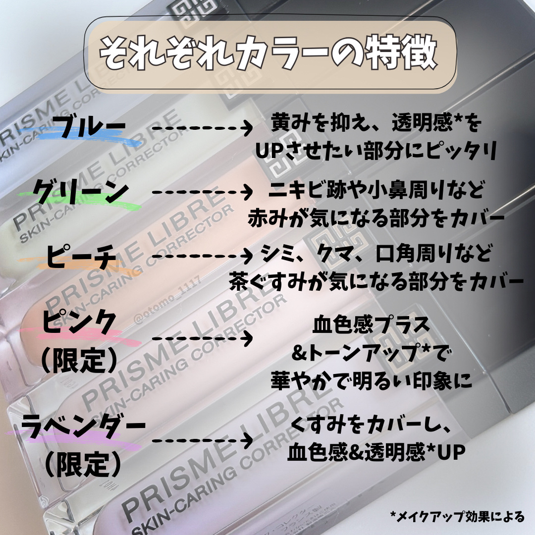 プリズム・リーブル・スキンケアリング・コレクターは全て2025年春限定色でコンシーラーは通常購入出来るものです💗 カバー力について、プリズム・リーブル・スキンケアリング・コレクターとコンシーラーの仕上がりを比較すると、パッケージやチップは同じでも中身はやっぱりしっかり違いがでて、コンシーラーの方が当たり前には当たり前ですがカバー力があります◎ カラーについては、今回の限定品ラベンダーとピンクならどっちがオススメかというと私的にはラベンダーの方をオススメしたいです💜