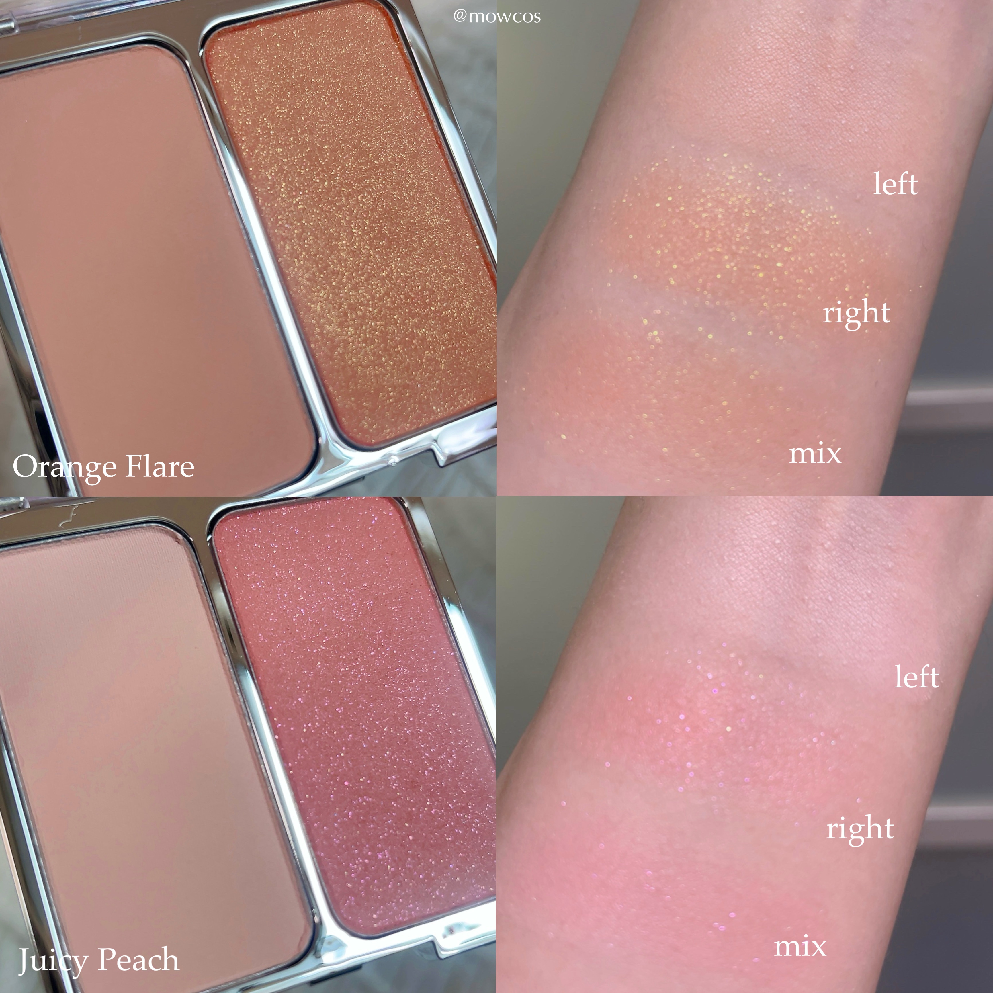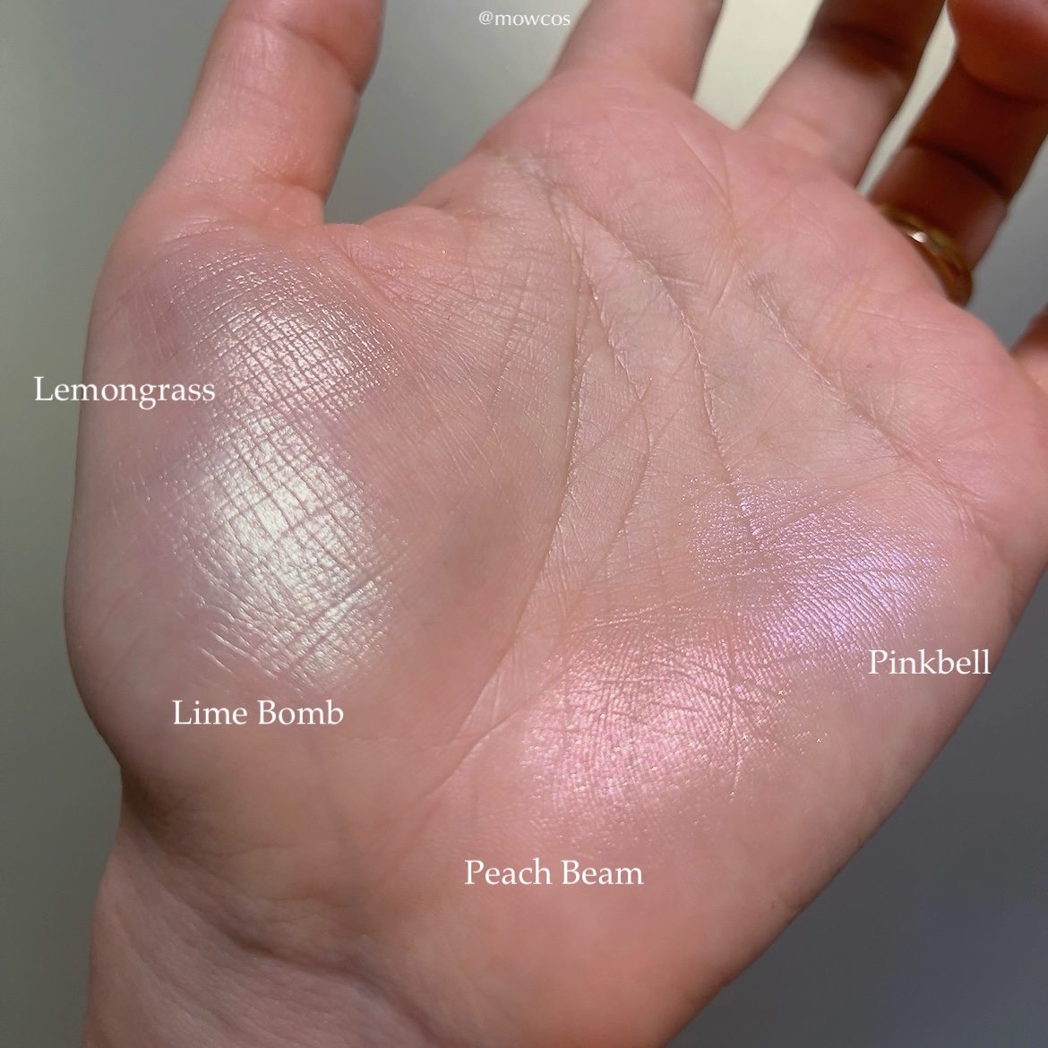 春の庭園をイメージして作られた2aNの春新作コスメ🌸Blooming Garden collection9種をスウォッチ✨ さらっとふわっとしたテクスチャーのアイシャドウ。メイクはドリーミングとライムボムを使ったよ☺️ 水分感のあるしっとりテクスチャーのハイライト。微細パール配合でアイシャドウと重ねて使っても可愛い🥰