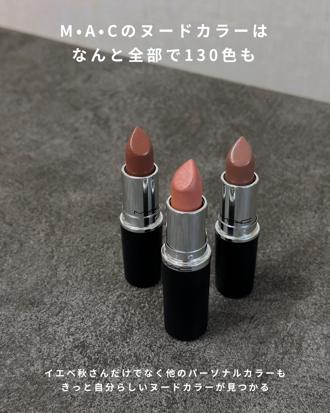 M・A・Cといえばヌードリップ! 令和のヌードリップは、自分らしさを引き出す #パーソナルヌード がキーワード🗝 M・A・C史上最大全130色登場であなたに似合うシェードがきっと見つかるよ🥹 ツヤと透け感で重たくならずまろやかな深みのあるシェード。 この色が私は1番しっくり来るかも!血色感はありつつもシアー質感で程よいヌードが初心者にも使いやすい🙆♀️ 乾燥しない新感覚のオイル in マットな質感💋 私の肌には明るめのコーラルベージュな発色に。彩度高めなのでヌードリップで顔色が悪くなるって人に試してほしい🍀