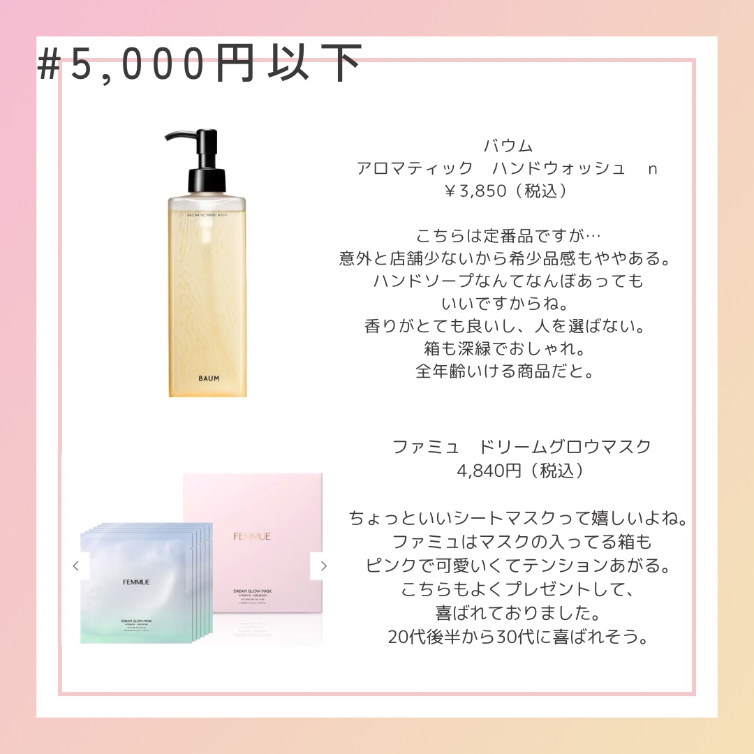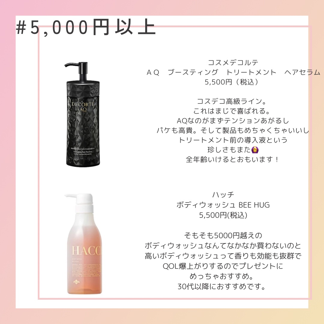 女友達へのプレゼントの大定番といえばコスメ・スキンケアですよね。 私のプレゼントのポイントは色物はなるべく避ける(本人の好みがある)・定番品は避ける(といいながら入ってますが…)・自分では手を出しにくいカテゴリのちょっといいもの!をプレゼントするように心がけてます🤩 どなたかのご参考になれば…!!