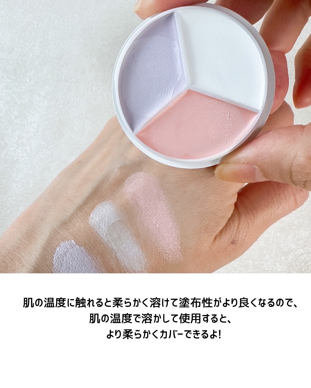 - クマからニキビ跡、シミまでこれ1つでカバー。 3色タイプだからこそ、気になるところや肌色を選ばずにご使用いただけます。 リキッドタイプを圧縮した高濃度バームのため高カバー高密着*¹を実現。 コンシーラーだけでなくコントアとしても使用可能です。 *1メーカー比