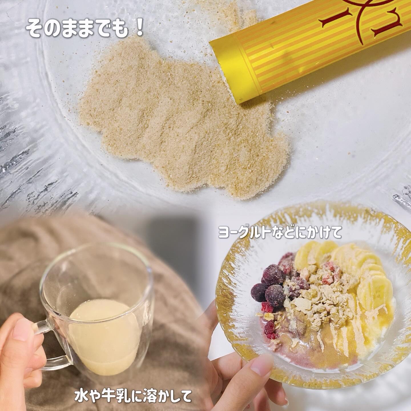 新商品なのに売り切れ続出の大人気商品とのことです!食後1包飲むだけおいしいミルク&きなこ味です♡ 粉が細かくて、ふわっと溶けやすいので飲みやすい!「きなこ味かー」と思ったけどほんのりとした甘みもあっておいしい! 炭水化物や外食、飲み会が多い方や、お正月太りをなんとかしたいひとはぜひ飲んでみてください!