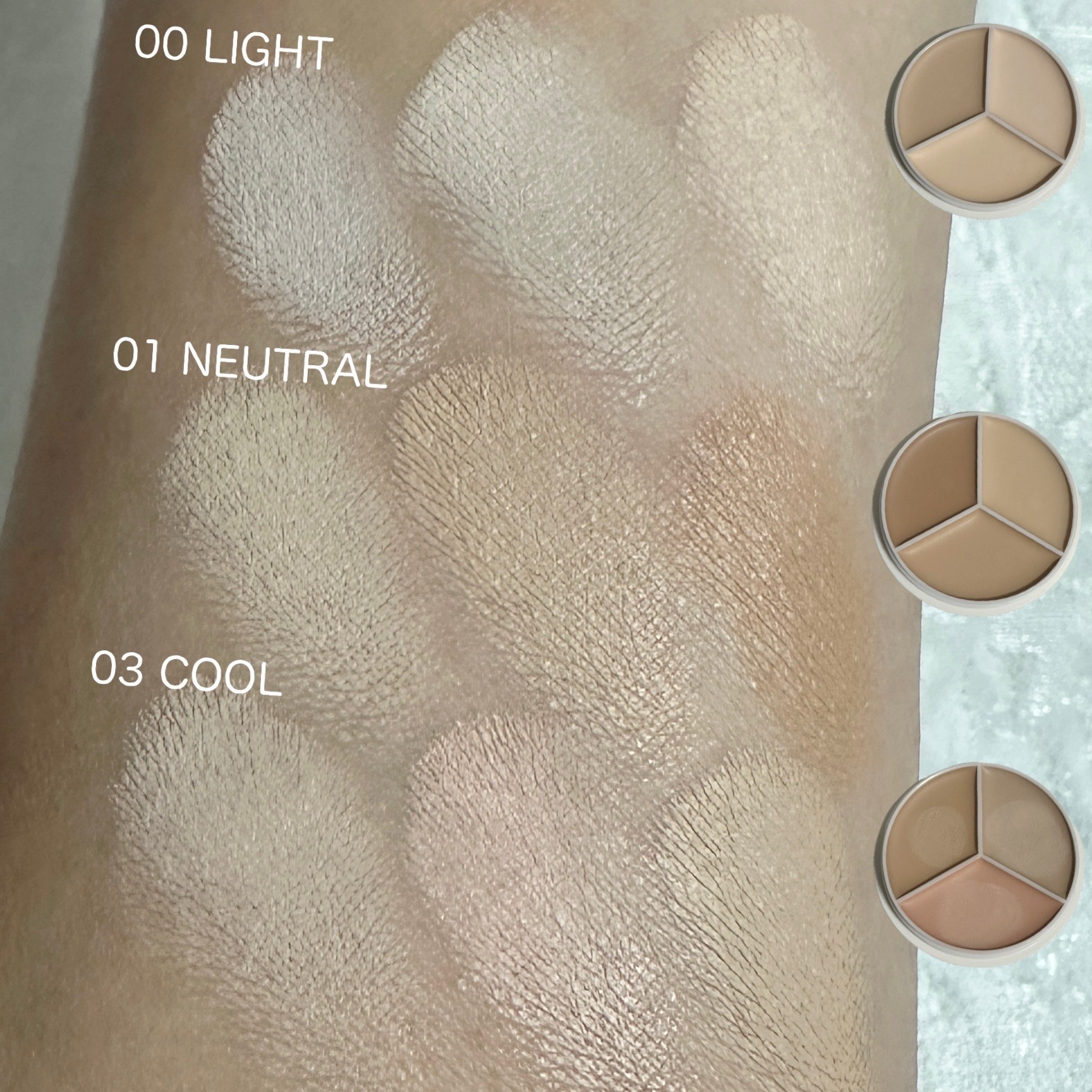 - クマからニキビ跡、シミまでこれ1つでカバー。 3色タイプだからこそ、気になるところや肌色を選ばずにご使用いただけます。 リキッドタイプを圧縮した高濃度バームのため高カバー高密着*¹を実現。 コンシーラーだけでなくコントアとしても使用可能です。 *1メーカー比