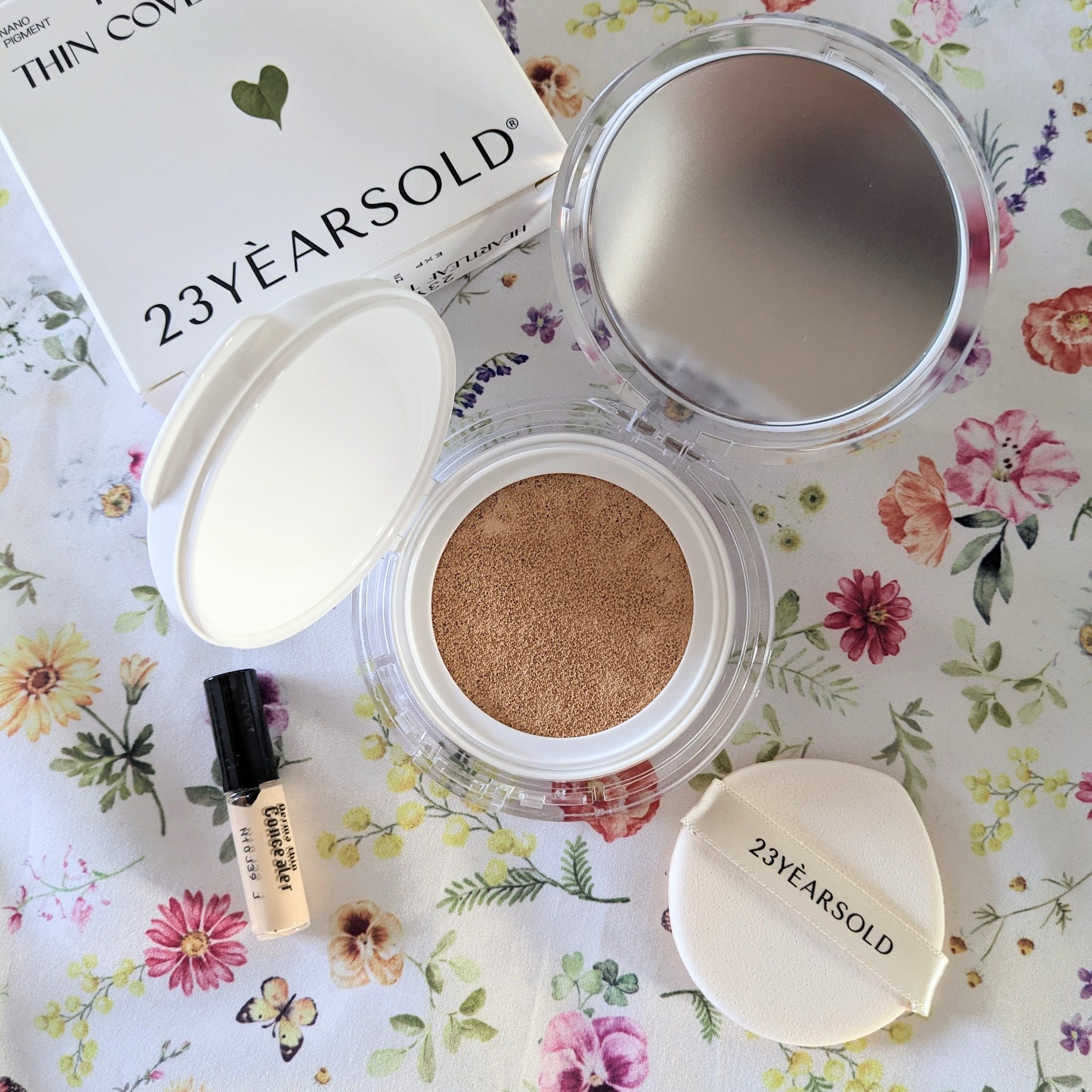 クッションだけでも肌悩みが程度カバーされ 気になる部分はコンシーラーすれば綺麗なセミマット肌に🫧 どちらもドクダミ配合で肌荒れが気になる時にも 罪悪感なく使えてお気に入り🫶🏻️ 23years old ハートリーフシーンカバークッション 21 マシュマロベージュ